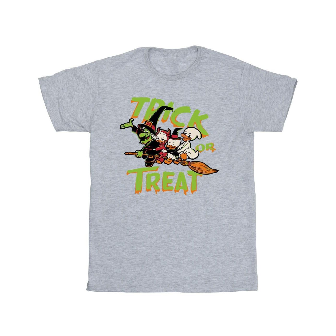 Dieses T-Shirt zeigt eine verspielte "Trick Or Treat"-Grafik, perfekt für Halloween-Feierlichkeiten oder um der Alltagsgarderobe einen Hauch von saisonalem Spass zu verleihen. Das Design präsentiert klassische Halloween-Charaktere und sorgt für eine fröhliche und festliche Stimmung.