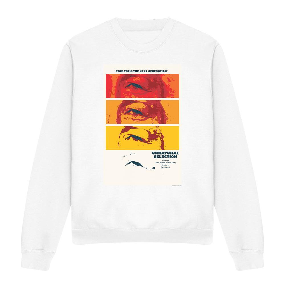 Dieses Sweatshirt zeigt einen einzigartigen Grafikdruck, inspiriert von "Star Trek: The Next Generation" Staffel 2, Episode 7, mit dem Titel "Unnatural Selection". Das Design präsentiert eine stilisierte Darstellung von Augen in einer lebendigen Farbpalette, die die Essenz der ikonischen Science-Fiction-Serie einfängt.