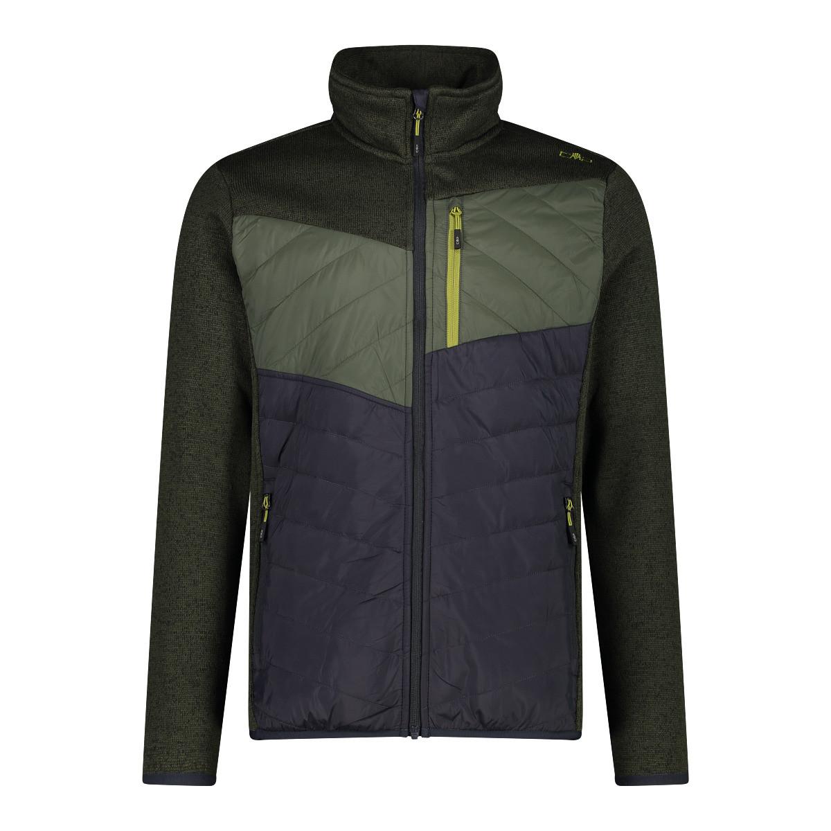 Hybridjacke mit sportlichem Schnitt. Das Vorderteil aus Nylon ist mit 60 g Feel-Warm-Flat-Fasern gefüllt, die Wärme spenden und dabei so wenig wie möglich auftragen. Die Ton-in-Ton-Ärmel sind aus weichem und bequemem Knit-Tech-Fleece. Die beiden Seitentaschen werden mit einem Reissverschluss geschlossen. Die Kapuze, der Saum und die Ärmel haben elastische Kanten, die die Passform verbessern. Eine perfekte obere Schicht für Outdoor-Abenteuer.