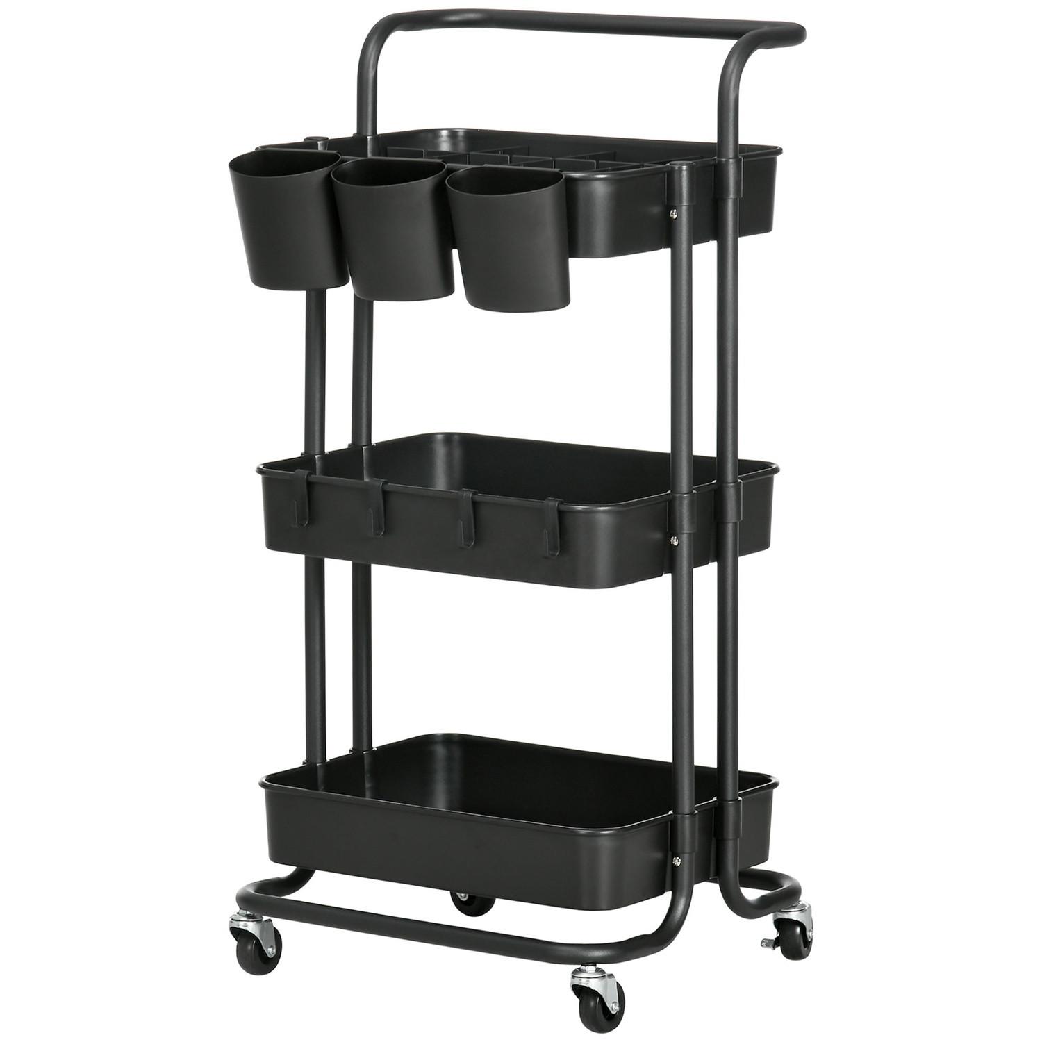 Northio, Servierwagen Rollwagen mit 3 Etagen, Ablagekörben, Küchenwagen mit Haken, Aufbewahrungswagen, Beistellwagen für Küche, Wohnzimmer, Stahl, Schwarz