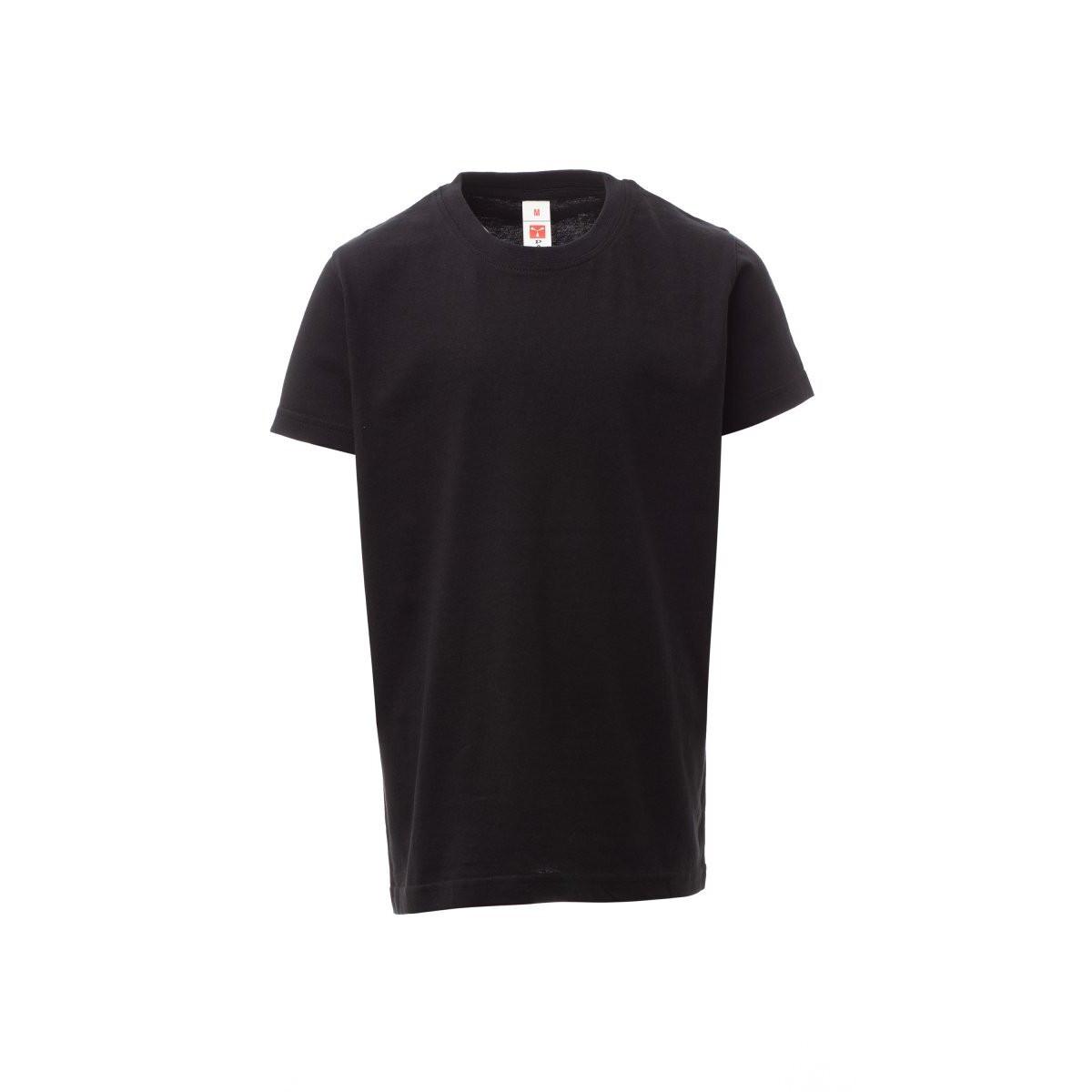 T-Shirt für Kinder, Rundhalsausschnitt, kurze Ärmel, Kragen aus 1,5 cm breitem gemischtem Spandex-Rippstrick mit Kappnaht auf der Vorderseite, structure röhrenförmig.