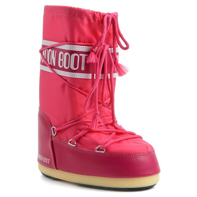 Die Moon Boot NYLON Schneestiefel sind für Outdoor-Aktivitäten im Winter konzipiert. Diese funktionellen und robusten Stiefel verfügen über eine Gummisohle und eine synthetische Schaumstoff-Innensohle für eine optimale Wärmedämmung. Das synthetische Schaumstofffutter sorgt für Wärme und Komfort bei langen Schneewanderungen. Das textile und synthetische Obermaterial ist wasserdicht und wetterfest. Die verstellbaren Träger mit silbernen Ösen garantieren eine präzise Passform. Die Moon Boot NYLON Stiefel sind in einer hellen Fuchsia Farbe erhältlich.