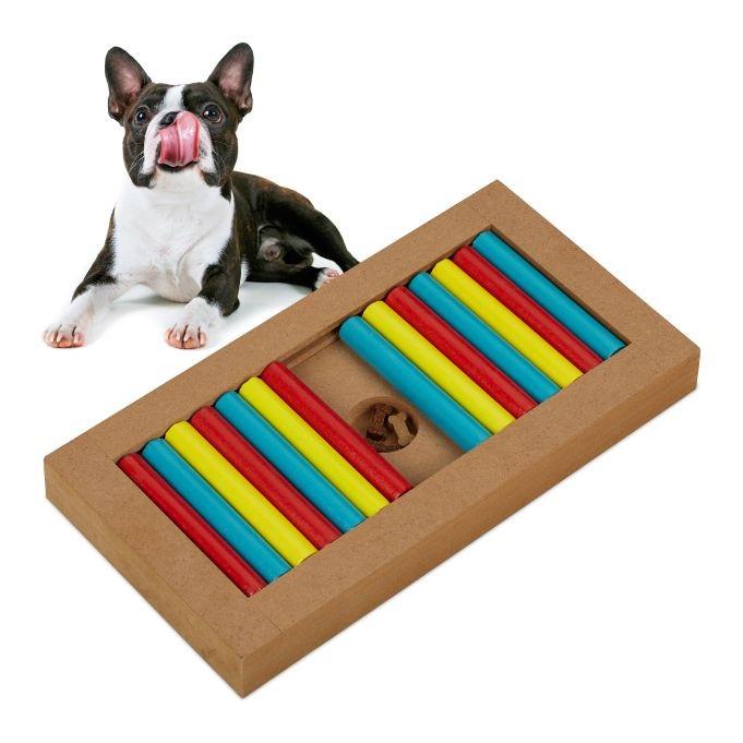 - Verstecken Sie Leckerlis unter bunten Stäben für spannenden Spielspaß.