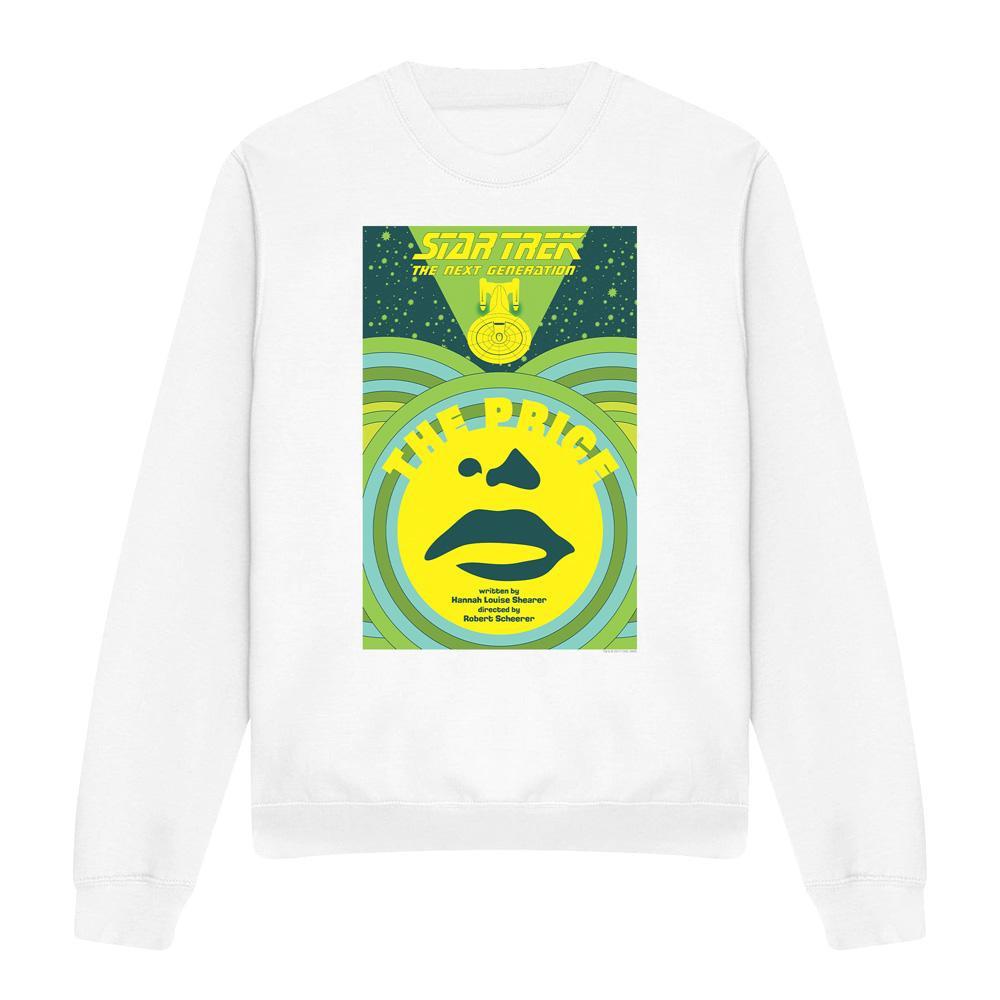 Dieses Sweatshirt zeigt einen Grafikdruck, der von Star Trek: The Next Generation Staffel 3 Episode 8 mit dem Titel „Der Preis“ inspiriert ist. Das Design fängt die Essenz der Episode mit einem unverwechselbaren visuellen Stil ein.