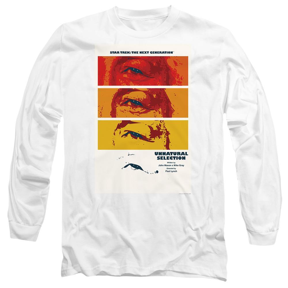 Dieses Langarm-T-Shirt zeigt einen Grafikdruck, der von "Star Trek: The Next Generation" Staffel 2, Episode 7, mit dem Titel "Unnatural Selection" inspiriert ist. Das Design präsentiert eine stilisierte Darstellung des Themas der Episode und macht es zu einem unverwechselbaren Stück für Fans.
