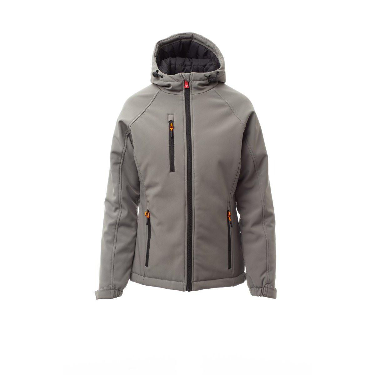 Diese gepolsterte Softshell-Jacke für Damen bietet hervorragenden Schutz mit WP 8000 mm HO und WVT 5000 g/m² 24h. Sie verfügt über einen durchgehenden Reissverschluss mit halbautomatischem, verriegelbarem Metallschieber und personalisierter Zuglasche. Die feste Kapuze ist mit einem verstellbaren Kordelzug ausgestattet. Elastische Ärmelbündchen sind mit Klettverschluss verstellbar, und die Jacke umfasst zwei Seitentaschen sowie eine Brusttasche, alle mit Reissverschlüssen gesichert. Fluoreszierende Reissverschlüsse sorgen für zusätzliche Sichtbarkeit. Innen befinden sich zwei Taschen: eine profilierte Reissverschlusstasche und eine Tablettentasche mit Klettverschluss. Der Saum ist mit personalisierten Stoppern verstellbar.