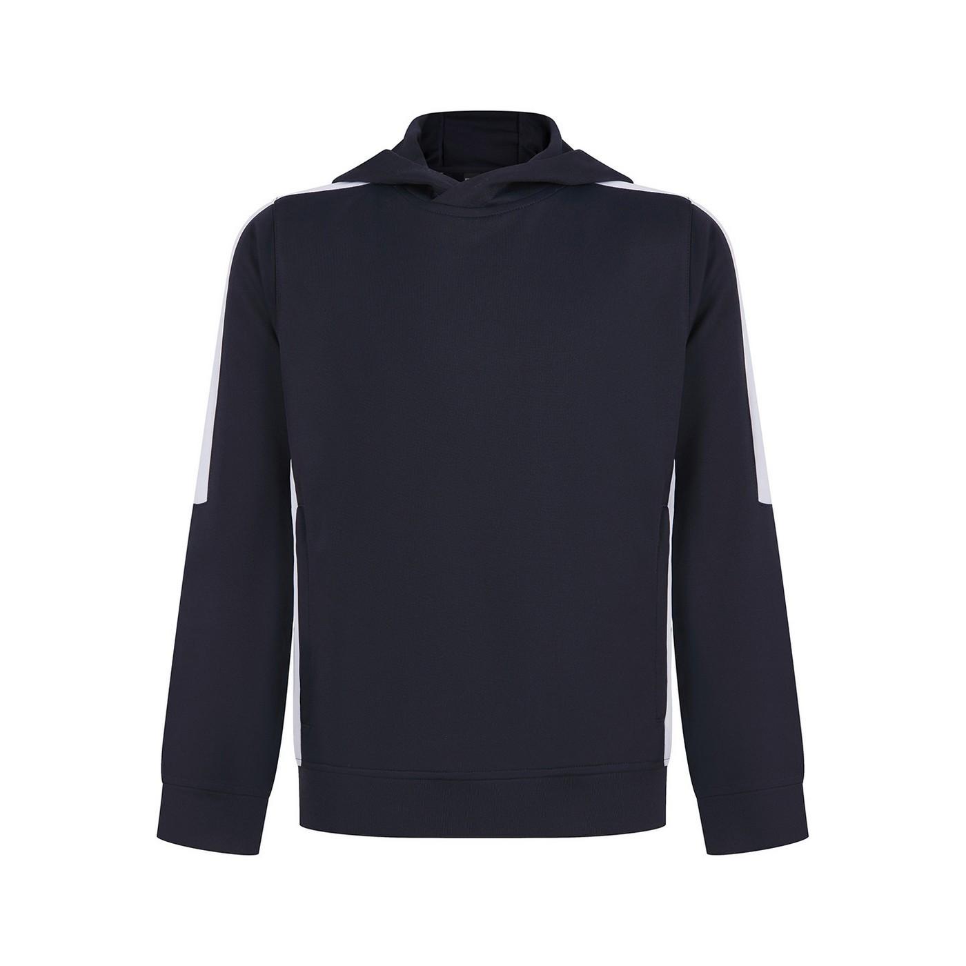 100% Polyester. Gewebe: angeraute Fleece-Innenseite. Design: Kontrast Detail. GSM (Gramm pro Quadratmeter): 250. Kapuzenmerkmale: 3 Panele. Crossover Halsausschnitt, Überschnittene Schulter, Abreiß-Etikett. Bündchen: Anliegend, gerippt. Mit Kapuze. Langärmlig. Taschenart: 2 Reißverschlusstaschen. Zum Überziehen. Nachhaltigkeit: Amfori-Freigabe, BSCI. 104: 61 cm. 146-152: 81,28 cm. 140: 76,2 cm. 128: 71,12 cm. 116: 66 cm. 158: 86,36 cm.