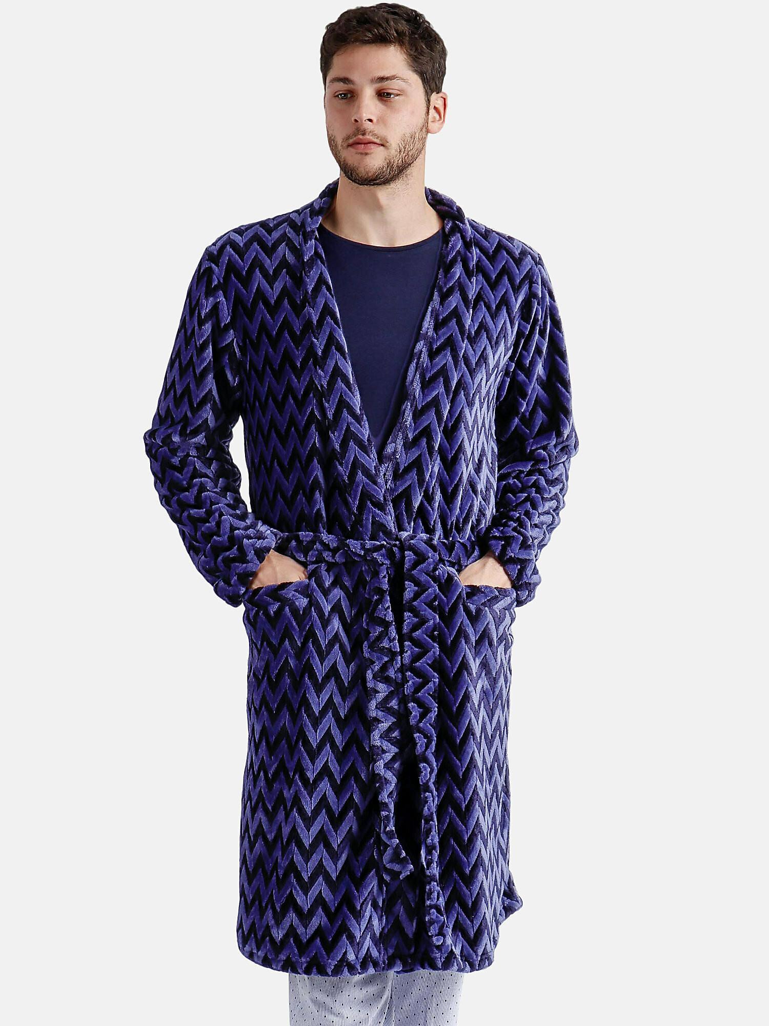 Dieser Morgenmantel von Admas ist vollständig aus Corel-Fleece gefertigt und mit einem Zickzackmuster versehen. Er hat lange Ärmel, praktische Seitentaschen und einen Gürtel zum Binden für eine verstellbare Passform. Dieser Morgenmantel bietet Komfort und Weichheit für entspannte Tage oder Winterabende, an denen Wärme gewünscht wird. Der Stoff ist sehr weich und fühlt sich angenehm an.