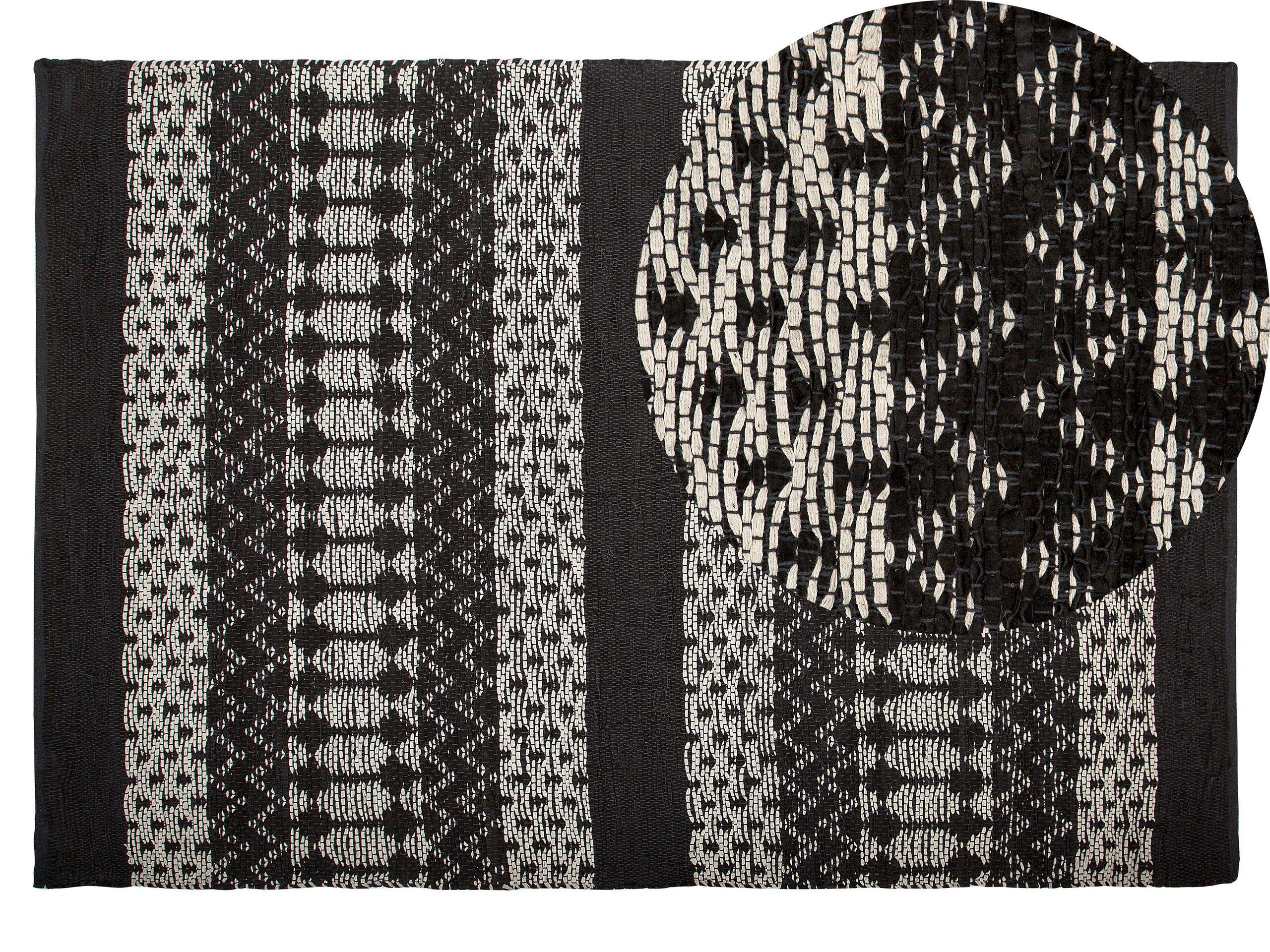 Moderner, handgefertigter Teppich aus Leder und Baumwolle. Peppen Sie Ihr Zuhause mit diesem modernen Vorleger auf. Die optimale Verbindung von echtem Leder mit natürlichen Baumwollfäden macht diesen Kurzflorteppich aussergewöhnlich pflegeleicht und langlebig, so dass er jahrelangem Gebrauch standhält. Dieses handgewebte Modell verleiht Ihrem Schlaf-, Wohn- oder Esszimmer mit Sicherheit einen stilvollen Touch.