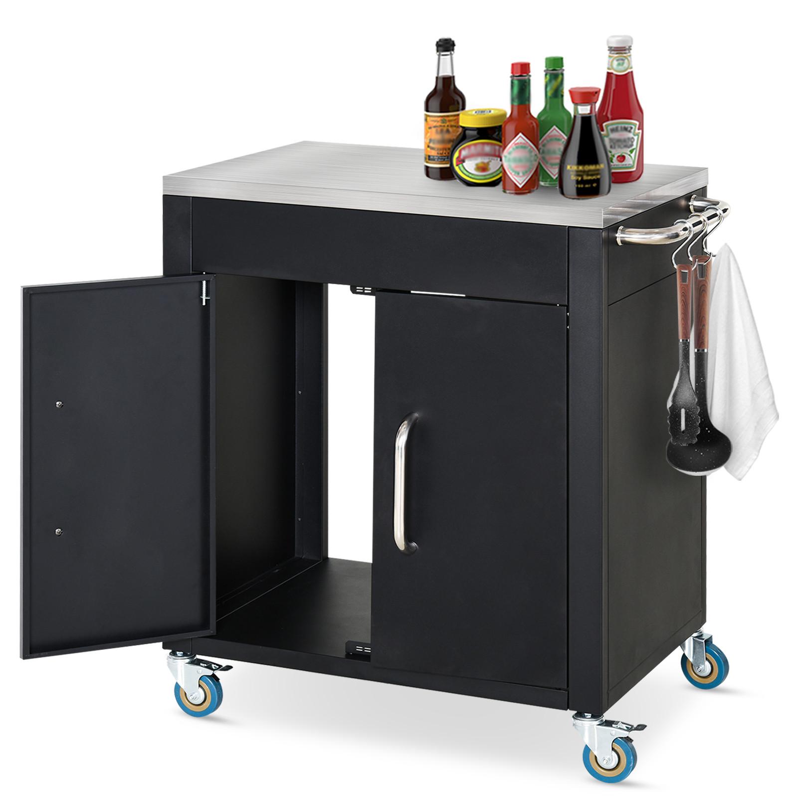 Dank des rücksichtsvollen Designs wurde eine Seitenwand weg gelassen, sodass Sie bei der Zubereitung von Speisen leicht an Ihr Zubehör kommen. Im Vergleich zu einer normalen hölzernen Küchentheke ist diese aus Eisen gefertigte Theke einfacher zu reinigen und leichter zu verstauen. Sechs verchromte Haken bieten Stauraum für Küchenzubehör. Ein kompakter und voll funktionsfähiger Kücheninselwagen wartet auf Sie.