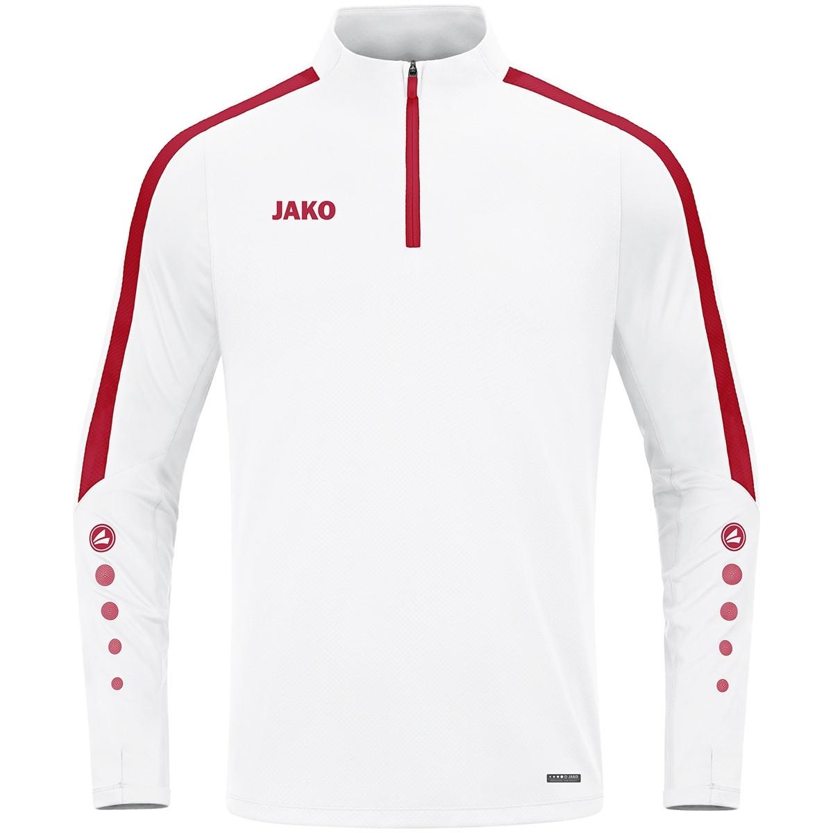 Der kontrastierende Wabeneinsatz verleiht dem Ziptop Power von JAKO einen dynamischen Look. Die Ärmel bestehen aus einem besonders elastischen Polyester-Elasthan-Gemisch und sind mit einer Daumenöffnung versehen. Das Material des Körpers ist sehr leicht und angenehm zu tragen. Die mikrofeinen Fasern transportieren die Feuchtigkeit direkt an die Außenseite des Stoffes und geben Schweißtropfen keine Chance.