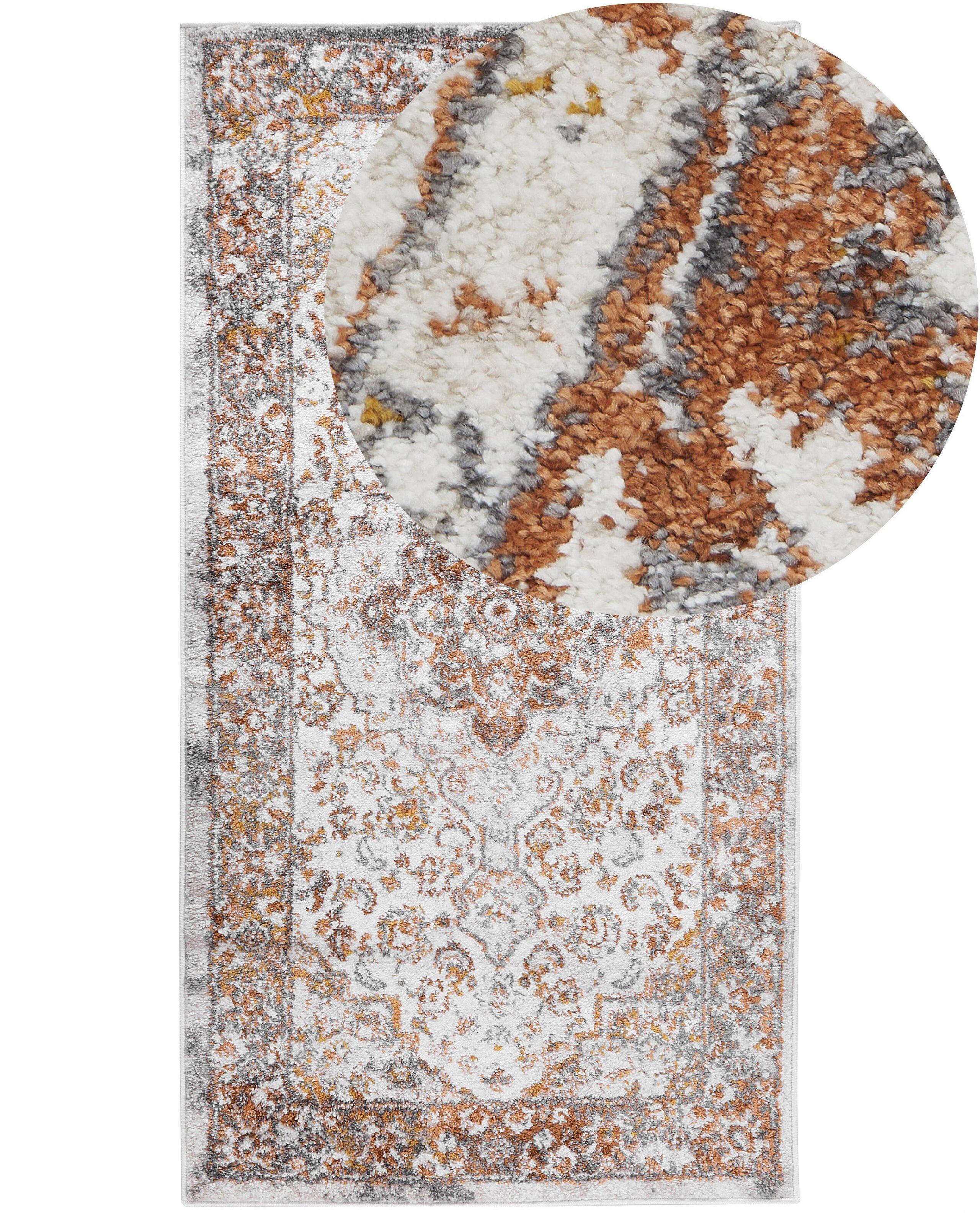 Orientalischer dekorativer Teppich. Verschönern Sie Ihr Wohnzimmer, Ihr Schlafzimmer oder auch Ihren Flur mit diesem Teppich. Er verleiht Ihrem Interieur einen sanften und zugleich eleganten Touch im Vintage-Stil und betont dank seines orientalischen Musters in den Farben Beige und Braun den zeitlosen Charakter traditioneller Einrichtungen. Aus synthetischem Material gefertigt, ist er pflegeleicht und langlebig. Er eignet sich auch für Räume mit Fussbodenheizung.