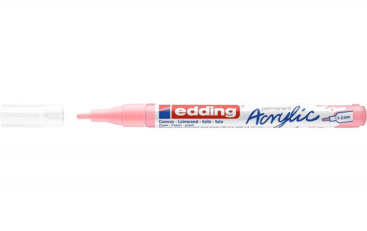 5300 - Acrylmarker Acrylmarker zum Malen auf hellen oder dunklen Oberflächen, ideal für Materialien wie Leinwand oder Malpapier. Die Rundspitze verfügt über eine Strichbreite von 1-2 mm. Die hochwertige pigmentierte Acrylfarbe auf Wasserbasis ist deckend, lichtbeständig, geruchsarm und nach dem Trocknen permanent. Erhältlich in 20 verschiedenen Farben. Die Farben sind perfekt auf die Farbpalette der edding 5200 Permanentsprays abgestimmt. Geeignete Ersatzspitzen (edding 5300 Ersatzspitzen) sind erhältlich. hochwertige pigmentierte Acrylfarbe auf Wasserbasis deckend, lichtbeständig, geruchsarm und nach dem Trocknen permanent ideal für Materialien wie Leinwand oder Malpapier zum Malen auf hellen oder dunklen Oberflächen Die Farben sind perfekt auf die Farbpalette der edding 5200 Permanentsprays abgestimmt