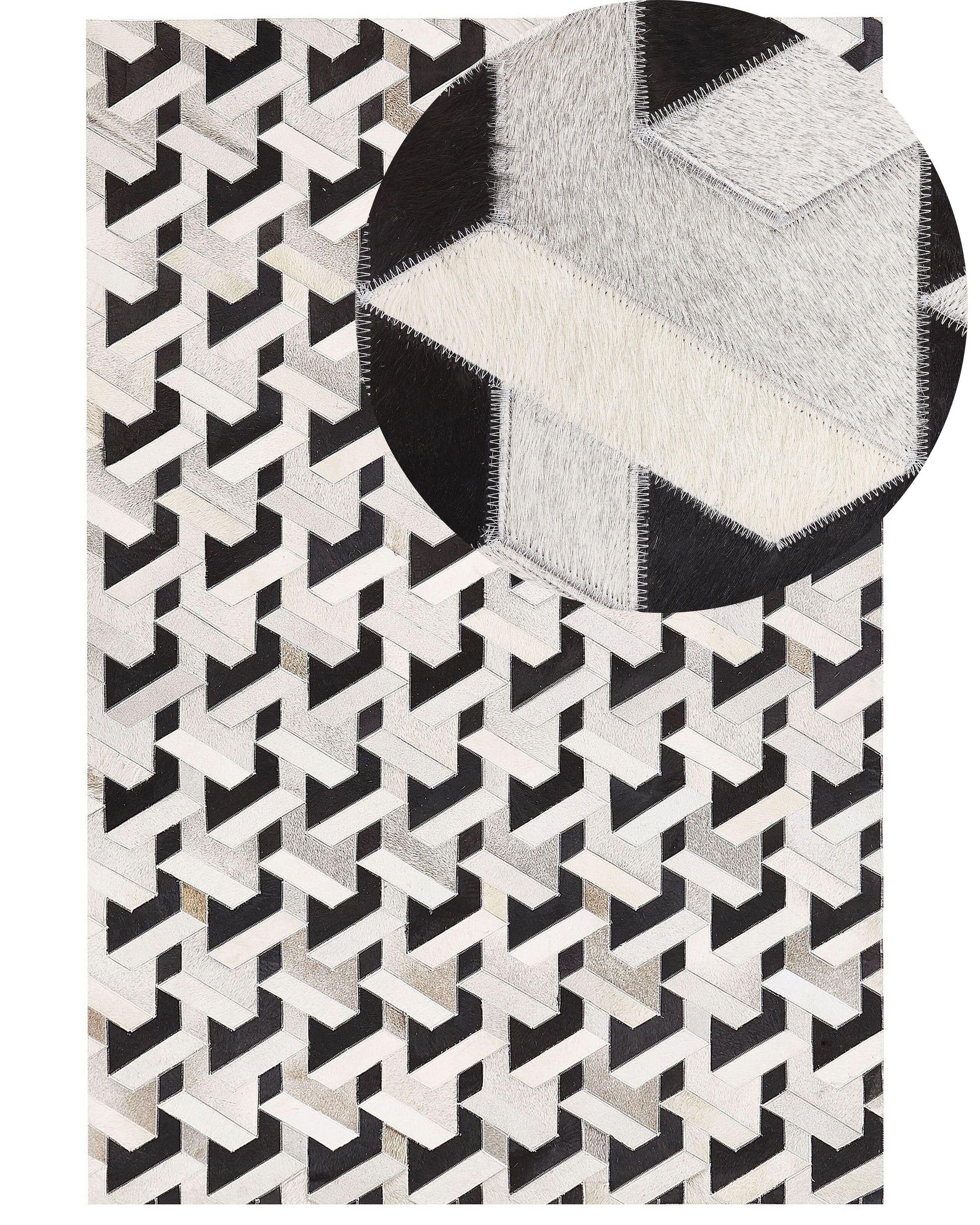 Zweifarbiger Lederteppich mit geometrischem 3D Muster. Modernität trifft auf klassische Farben – die Kombination des auffälligen, geometrischen Musters und der grau-schwarzen Farbtöne machen dieses Accessoire zum stilvollen Hingucker. Dank des hochwertigen Leders ist der Teppich nicht nur angenehm weich und warm unter den Füssen, er eignet sich auch für Wohnungen mit Fussbodenheizung.