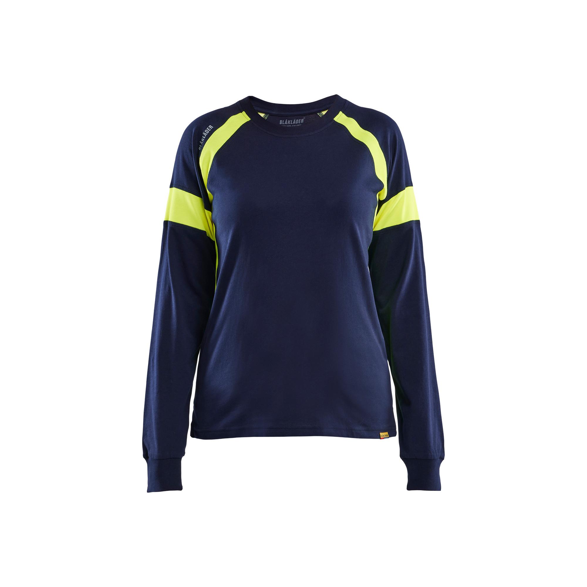Dieses langärmelige T-Shirt aus Baumwolle verfügt über neongelbe Bereiche für bessere Sichtbarkeit. Es ist ideal für Branchen, in denen Reflektoren an der Arbeitskleidung nicht erlaubt sind. Ein Herrenmodell (3520) ist ebenfalls erhältlich.