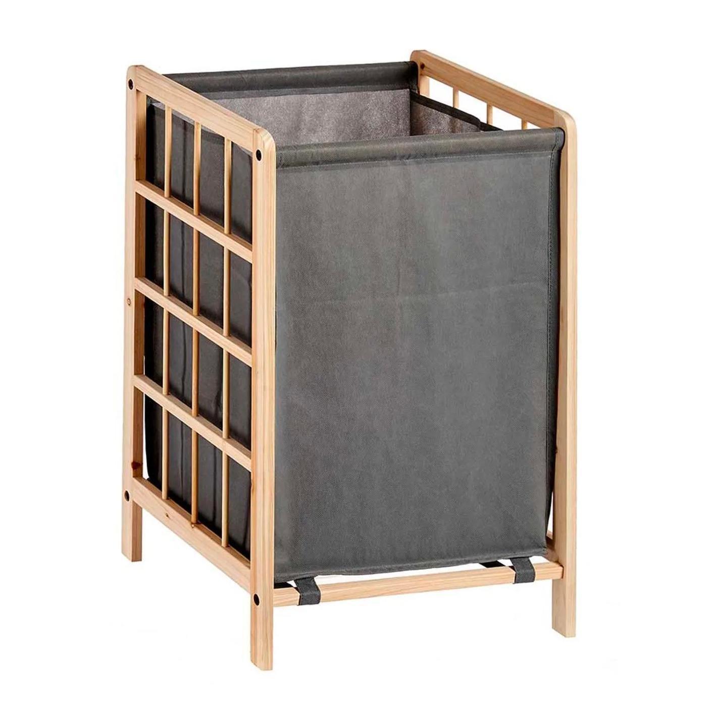 Northio Wäschekorb aus Stoff und Holz - Grau