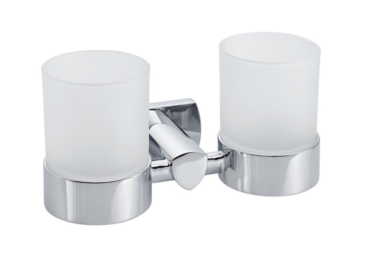 diaqua® Doppelglashalter Biasca verchromt 9.6 X 18.9 X 10.3 CM - Besonderes Merkmal der Serie Biasca: die Befestigung passt auf die meisten Bohrlöcher von bestehenden Ausstattungsserien in der Schweiz mit horizontalem Lochabstand von 20 - 40 mm. In diesen Fällen ist also eine Montage ohne Bohren möglich. Die Halterungen sind leicht zu montieren und zum Reinigen einfach abnehmbar. Es erübrigt sich somit ein mühsames An- und Abschrauben während des Putzens. Eine glasfaserverstärkte Befestigungsplatte bietet sicheren Halt. Zu dieser Serie gehören auch ein Wandhaken, ein Wc-Papierhalter, ein Reserverollenhalter, eine Badetuchstange, eine doppelte Badetuchstange, ein Handtuchhalter 2-armig, ein Handtuchring, eine Toilettengarnitur, ein Glashalter sowie Doppelglashalter, eine Seifenschale, eine Glasablage und ein Seifenspender. Lieferung inklusive Montagematerial.