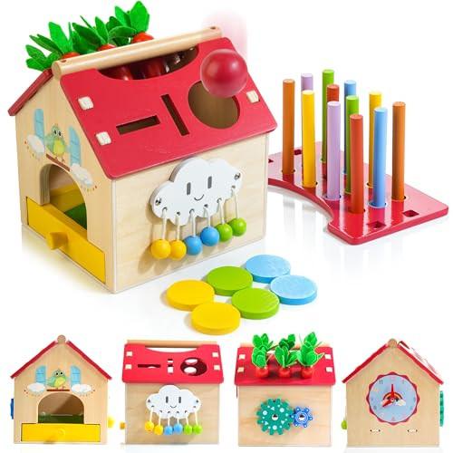 * Die Fallballspiele, Farbenspiele, Karottensortierspiele und Münzspiele sind so konzipiert, dass sie den natürlichen Wunsch jedes Babys nach Feinmotorik, Hand-Augen-Koordination und dem Erkennen von Farben und Formen fördern. * Die Babyspielzeuge sind aus hochwertigem Holz gefertigt, haben eine glatte Oberfläche, sind langlebig und lichtecht. Robust und langlebig, nicht leicht zu biegen, zu knacken und zu verformen. Stellen Sie sicher, dass Ihre Jungen und Mädchen sicher spielen können. * Diese lustige und interaktive Art und Weise verbessert und entwickelt die Hand-Augen-Koordination, das logische Denken, die Vorstellungskraft und Kreativität, die Feinmotorik, die Farberkennung und die grafische Erkennung der Kinder. Mit unserem Baby-Lernspielzeug kann Ihr Kind spielerisch lernen. * Dieser Motorik-Würfel ist aus natürlichem Buchenholz gefertigt, abgerundete und glatte Kanten verletzen die Hände nicht, die beim Spielen nicht splittern werden. Bunte Objekte aus Farbe auf Wasserbasis, leicht zu reinigen. Umfassender Schutz der Gesundheit und Sicherheit der Kinder beim Spielen. * Was könnten Sie sich Besseres für Ihre Kinder wünschen? Die Freiheit und Unterstützung, die unbekannte Welt zu erforschen und die herzerwärmende Gesellschaft der Eltern-Kind-Bindung. Bauklötze aus Holz sind das perfekte und schöne Weihnachts-, Geburtstags- und Urlaubsgeschenk für Kinder im Vorschulalter. Kinder unter drei Jahren sollten das Produkt unter elterlicher Aufsicht verwenden. Verschlucken ist VERBOTEN! * Größe-18.8 x 18.8 x 19.8 cm