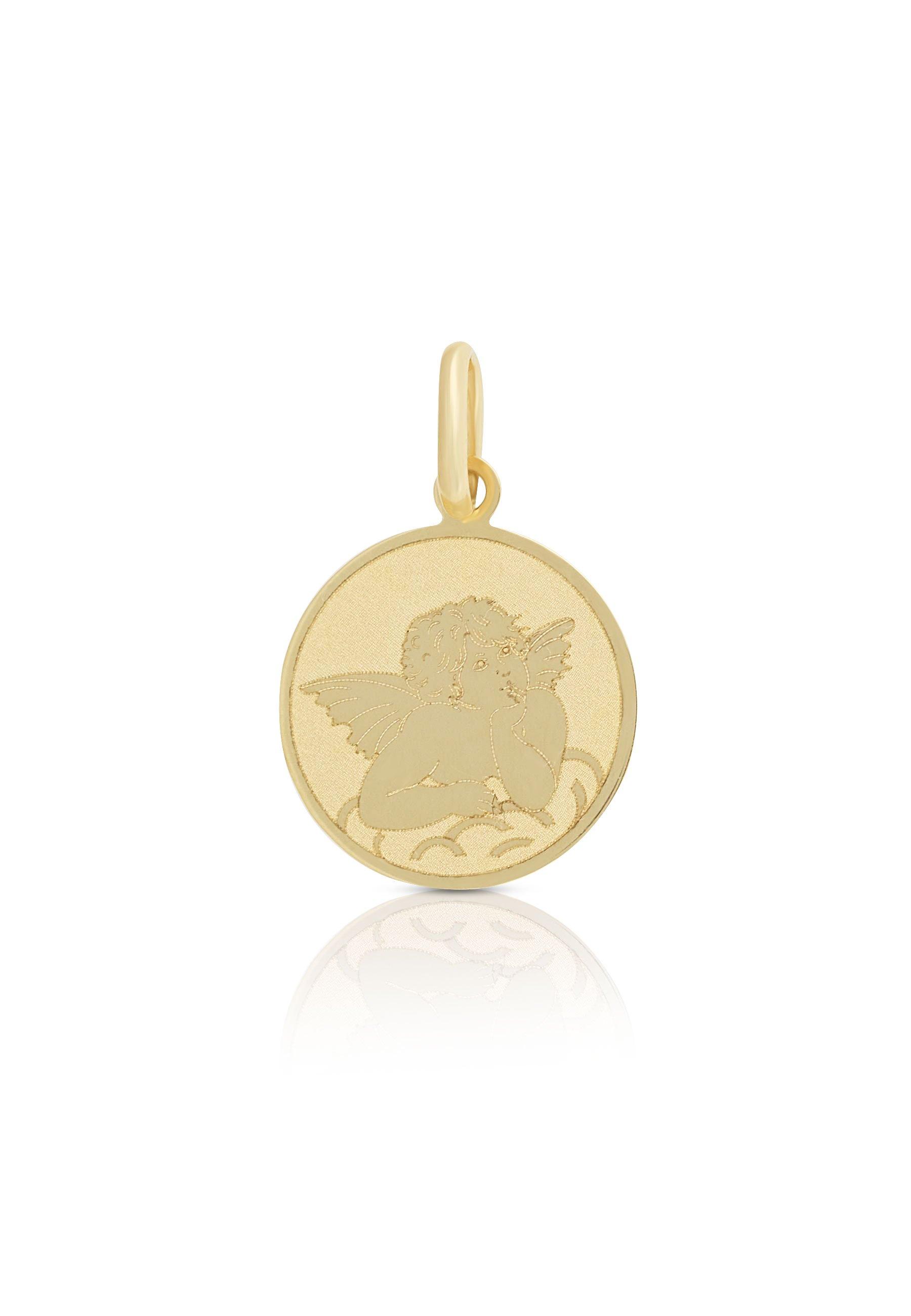 MUAU Schmuck Anhänger Medaille Engel Gelbgold 750, 12mm