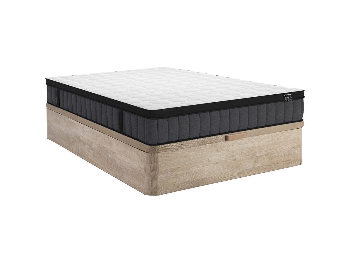 Ysmée, Set aus Bettgestell mit Bettkasten + Matratze - 160 x 200 cm - 7-Zonen-Taschenfederkern & Memory Schaum - Stärke 25 cm - Holzfarben hell - TOLCA von YSMÉE