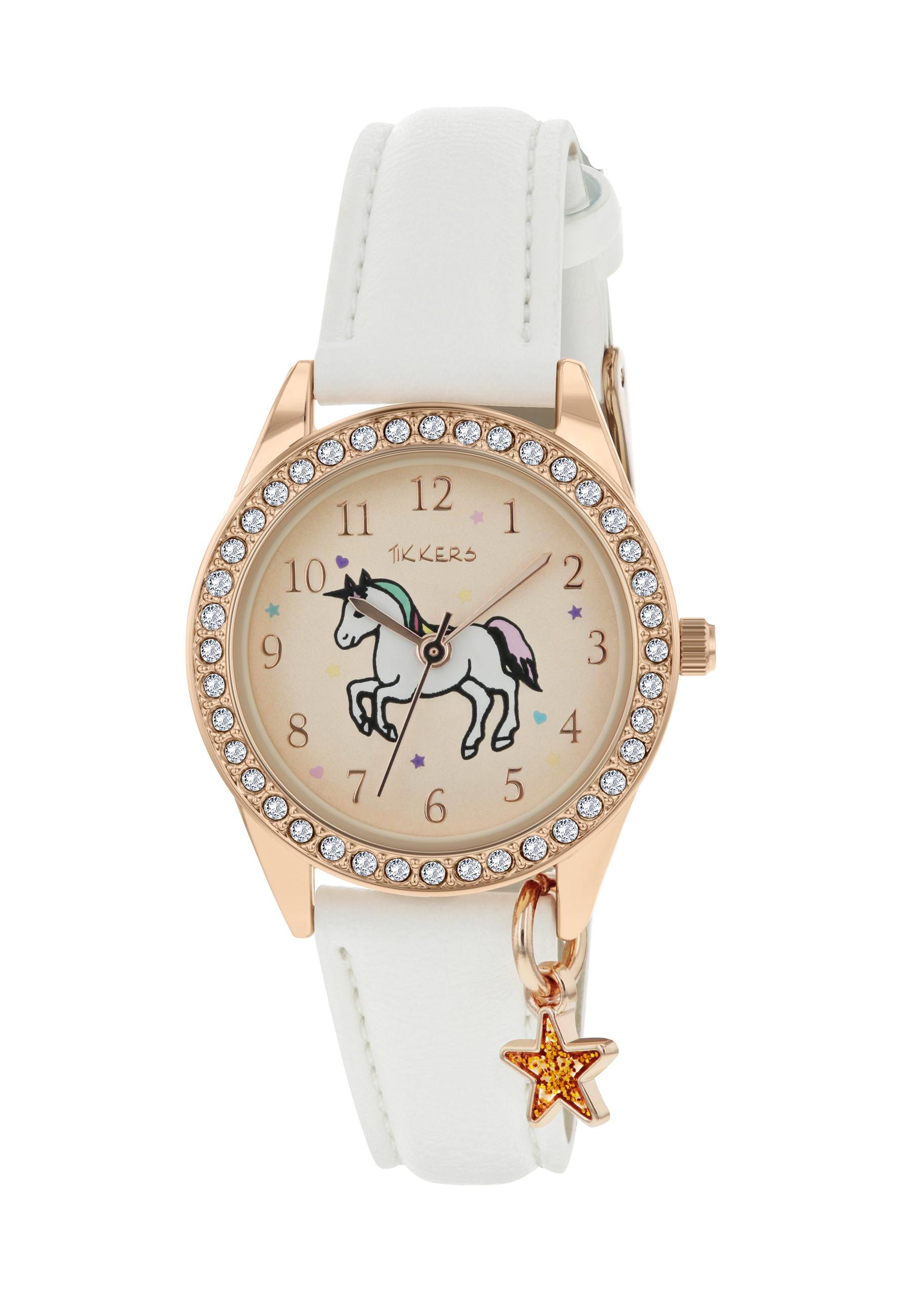 Diese Tikkers-Uhren bringen mit funkelnden Kristall-Akzenten und charmanten Designs einen Hauch von Glamour an junge Handgelenke. Jede Uhr hat ein stilvolles, farbenfrohes Zifferblatt mit lustigen Motiven wie Flamingos und Einhörnern und ist damit perfekt für Kinder, die ein bisschen Glitzer lieben. Die eleganten roségold- oder silberfarbenen Gehäuse, die farbenfrohen Armbänder und die bezaubernden Anhänger machen diese Uhren zu reizvollen Accessoires, die das Ablesen der Zeit mit Stil fördern. Ideal für Kinder, die eine lustige, aber dennoch anspruchsvolle Uhr suchen, die zu ihrer Persönlichkeit passt.