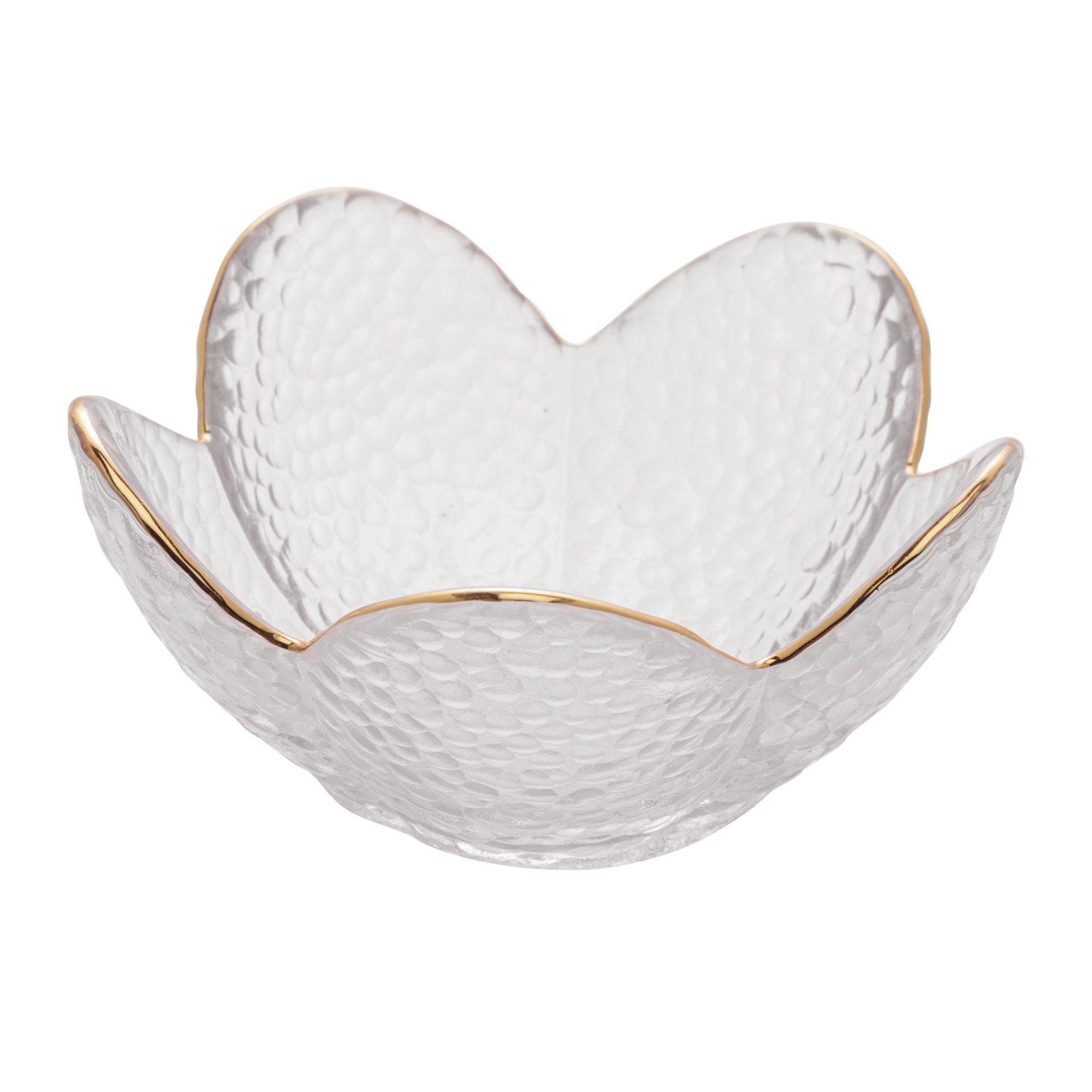 Wir stellen Ihnen die Blumen-Kristallschale vor, die perfekte Art, Ihre Dips, Nüsse und mehr zu genießen. Mit ihrem schönen Blumendesign kann diese Schale auch für verpackte Schokolade auf Ihrem Kaffeetisch oder sogar für Ihre Kaffeekapseln verwendet werden. Die perfekte Art, Ihrem Zuhause einen Hauch von Klasse zu verleihen.