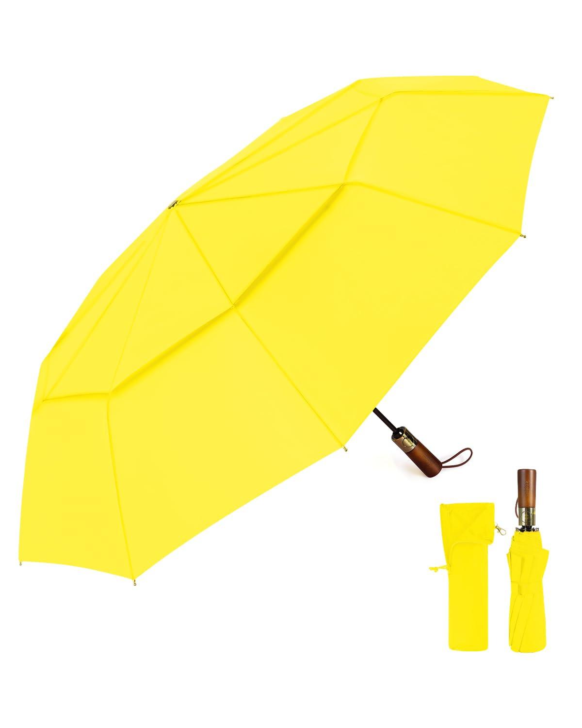 Alopini Automatischer großer sturmsicherer Regenschirm, Taschenschirm mit belüftetem Doppeldach und Holzgriff