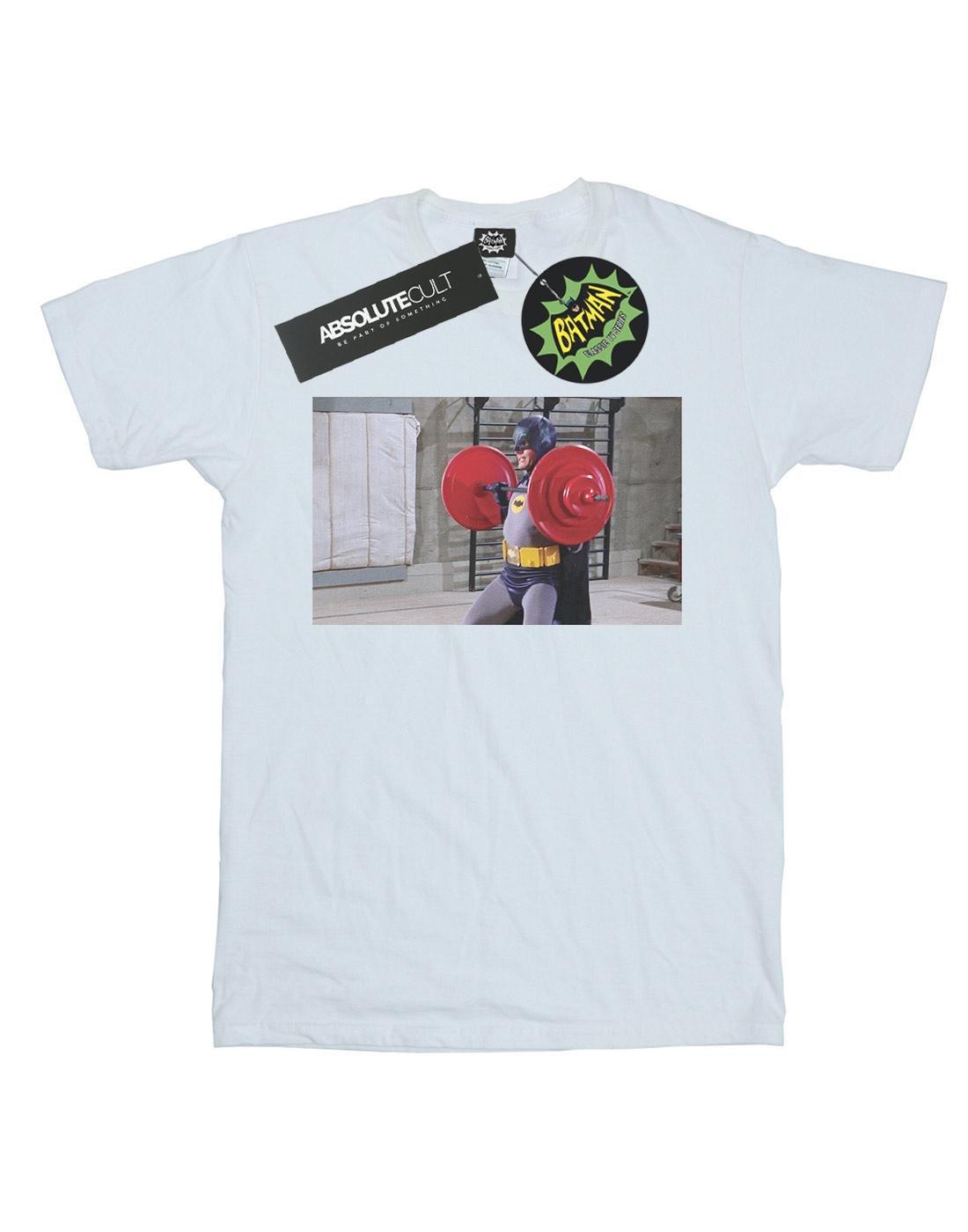 Dieses T-Shirt zeigt ein klassisches Bild von Batman beim Gewichtheben, perfekt für Fans des ikonischen Superhelden und der Vintage-Fernsehserie. Das Design fängt einen humorvollen und unvergesslichen Moment ein und macht es zu einem herausragenden Stück für die Freizeitkleidung.