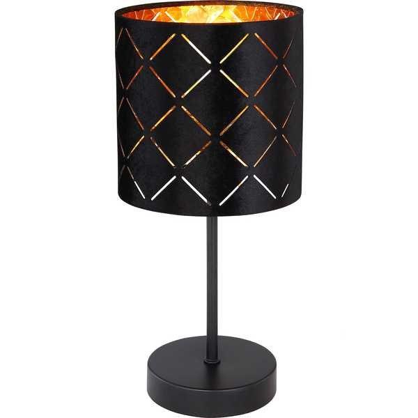 Tischleuchte Metall schwarz, Samt schwarz, Schirm mit Dekorstanzungen, Schalter, D:150, H:350, exkl. 1xE14 25W 230V