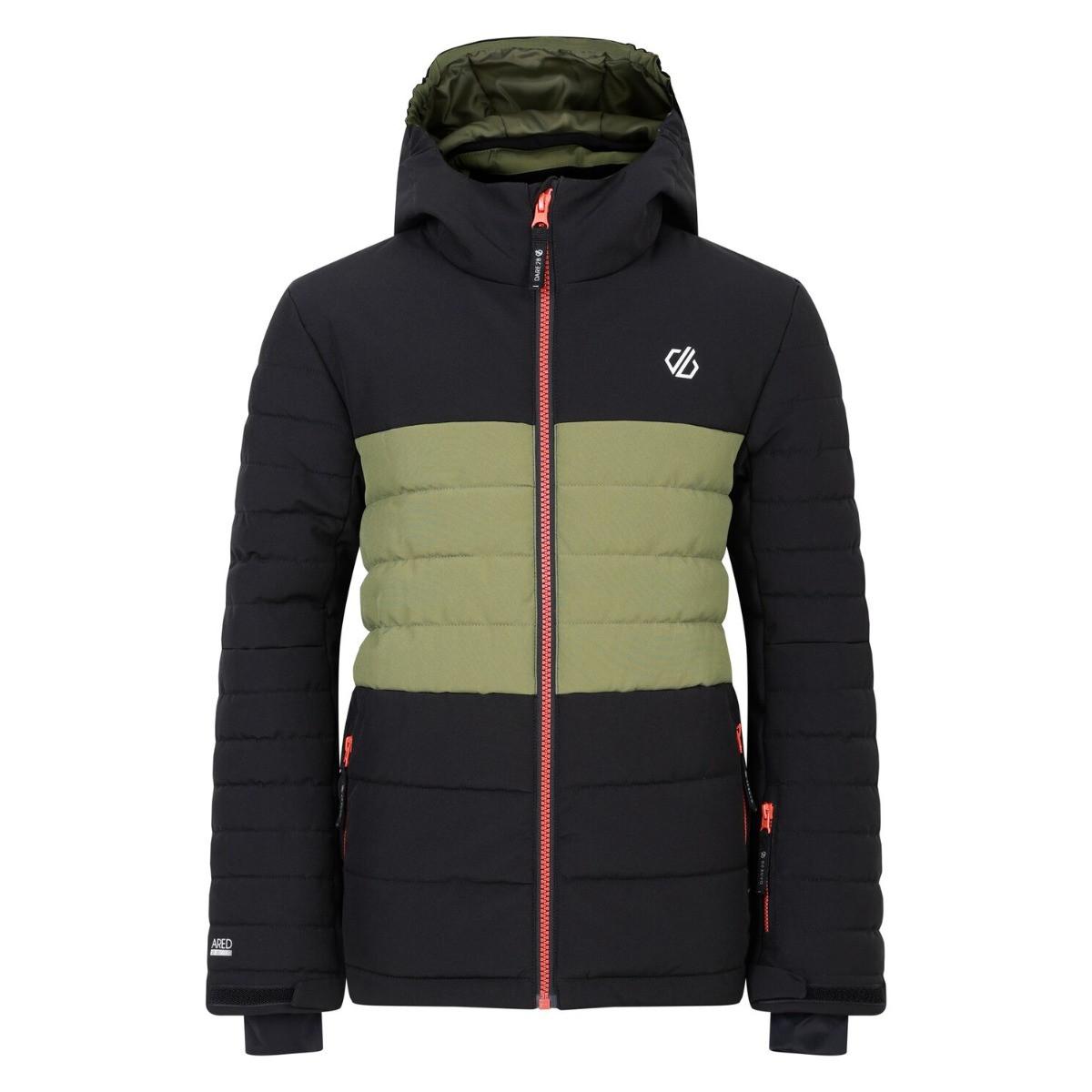 Die K CHEERFULL III JACKET Skijacke der Marke Dare 2 b ist eine funktionelle und technische Skijacke für Wintersport und Outdoor. Diese Jacke besteht aus recyceltem Polyester und bietet optimale Abdichtung, Wärme und Komfort. Die Jacke ist bunt, mit einer Kombination aus schwarzen und grünen Olivenfarben, die ihm einen dynamischen Look verleiht. Die Jacke ist mit zwei Seitentaschen ausgestattet, jede mit eigenem Reißverschluss, für ein optisch ansprechendes Design mit roten Akzenten verziert. Der vordere Reißverschluss ist ebenfalls rot, was der Jacke einen Hauch von Persönlichkeit verleiht. Auf der linken Brust befindet sich ein weißes Logo in Form eines abstrakten "D" oder Diamanten, das ein Symbol der Marke Dare 2 b ist. Die Jacke ist außerdem mit einer Kapuze mit grünem Olivfutter ausgestattet, was der Jacke einen Hauch von Stil verleiht. Schließlich hat die Jacke eine Aufschrift "ARED" auf dem unteren Teil des linken Arms, in der Nähe des Ellbogens.