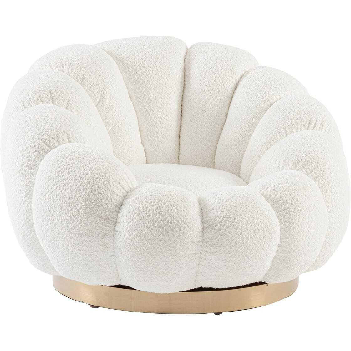 Drehsessel aus Polyester und Holz, Farbe Weiss, 86 x 62 x 72hDrehstuhl 360°Bezug aus Polyester In Boucle-OptikPolsterung aus Polyurethanschaum (Sitzdichte 25Kg/m3, 18Kg/m3 Rückenlehne)Boden mit Dekoring aus goldfarbenem StahlGestell aus MDF und Sperrholz