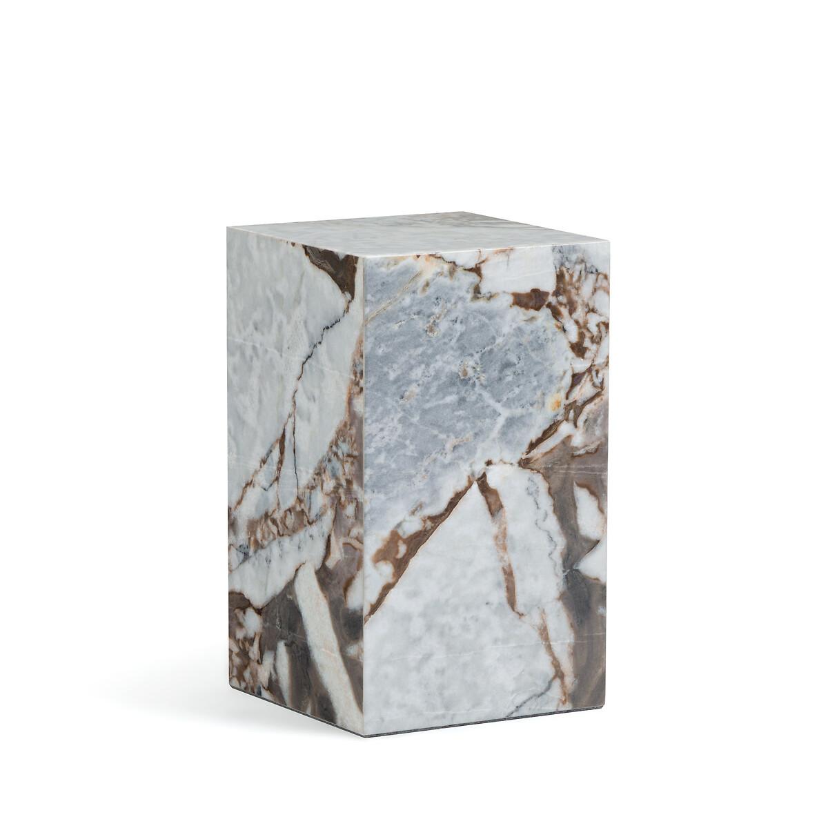 Wunderschöner leicht satinierter Marmor, dessen Maserung abstrakte Motive in verschiedenen Nuancen bildet. Jeder Beistelltisch Alcana ist ein Unikat.
