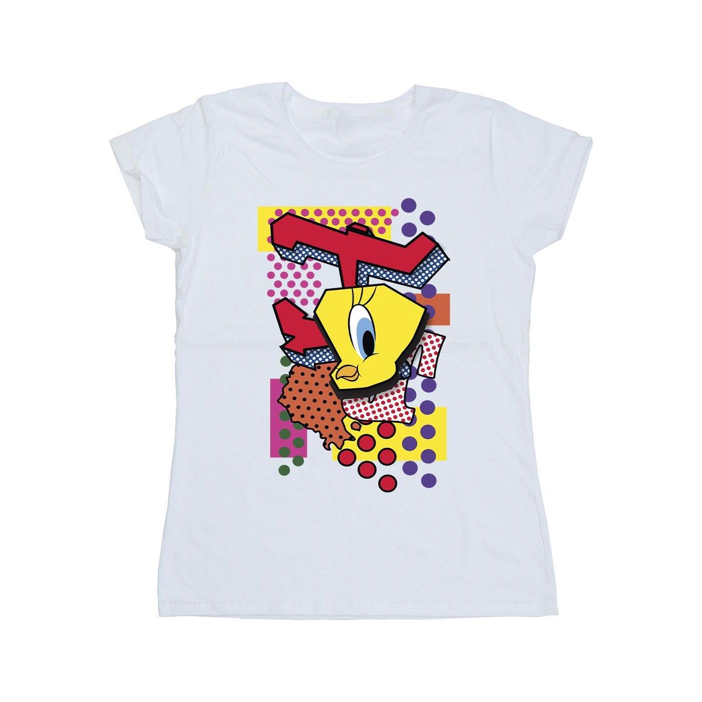 Dieses T-Shirt zeigt einen lebendigen Grafikdruck von Tweety Bird und ist eine verspielte Ergänzung für jede Freizeitgarderobe. Das Design umfasst kräftige Farben und geometrische Formen, die einen unverwechselbaren und auffälligen Look schaffen.