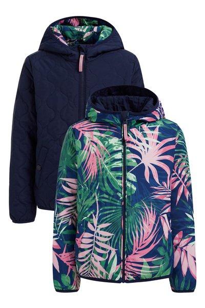 Beidseitig tragbare Jacke mit normaler Passform und zwei unterschiedlichen Seiten. Eine Seite ist einfarbig, die andere gemustert. Die Jacke ist gefüttert und mit einer Kapuze, einem Reißverschluss mit Kinnschutz und zwei Eingrifftaschen ausgestattet.