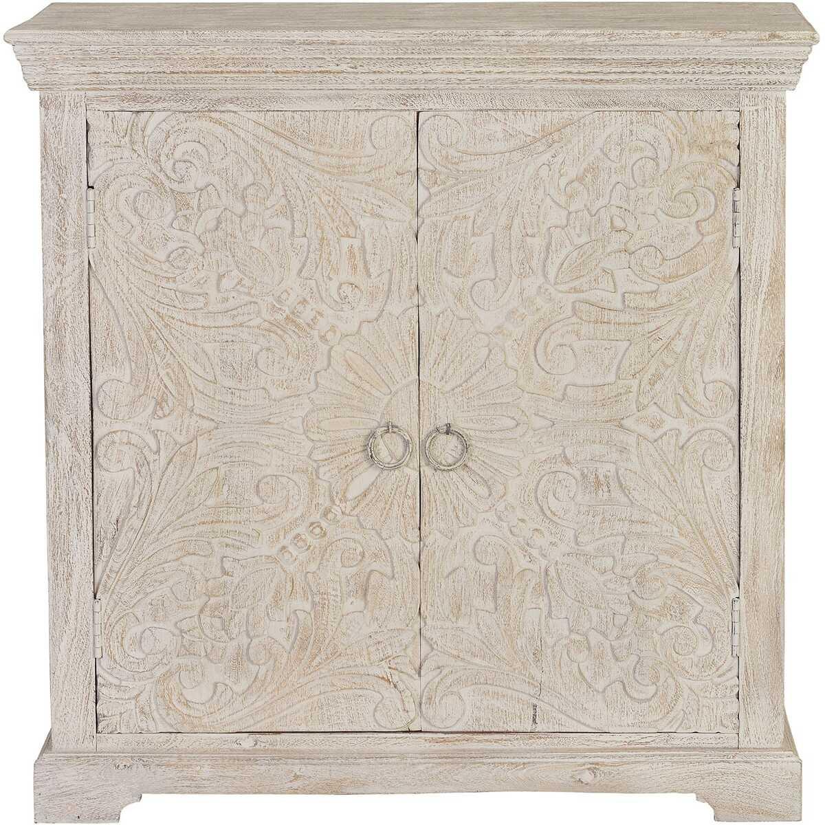 2-türiger Schrank aus Mangoholz, mit Innenregal. Türen: 71 x 36 cm. Höhe Innenregal: 35 cm