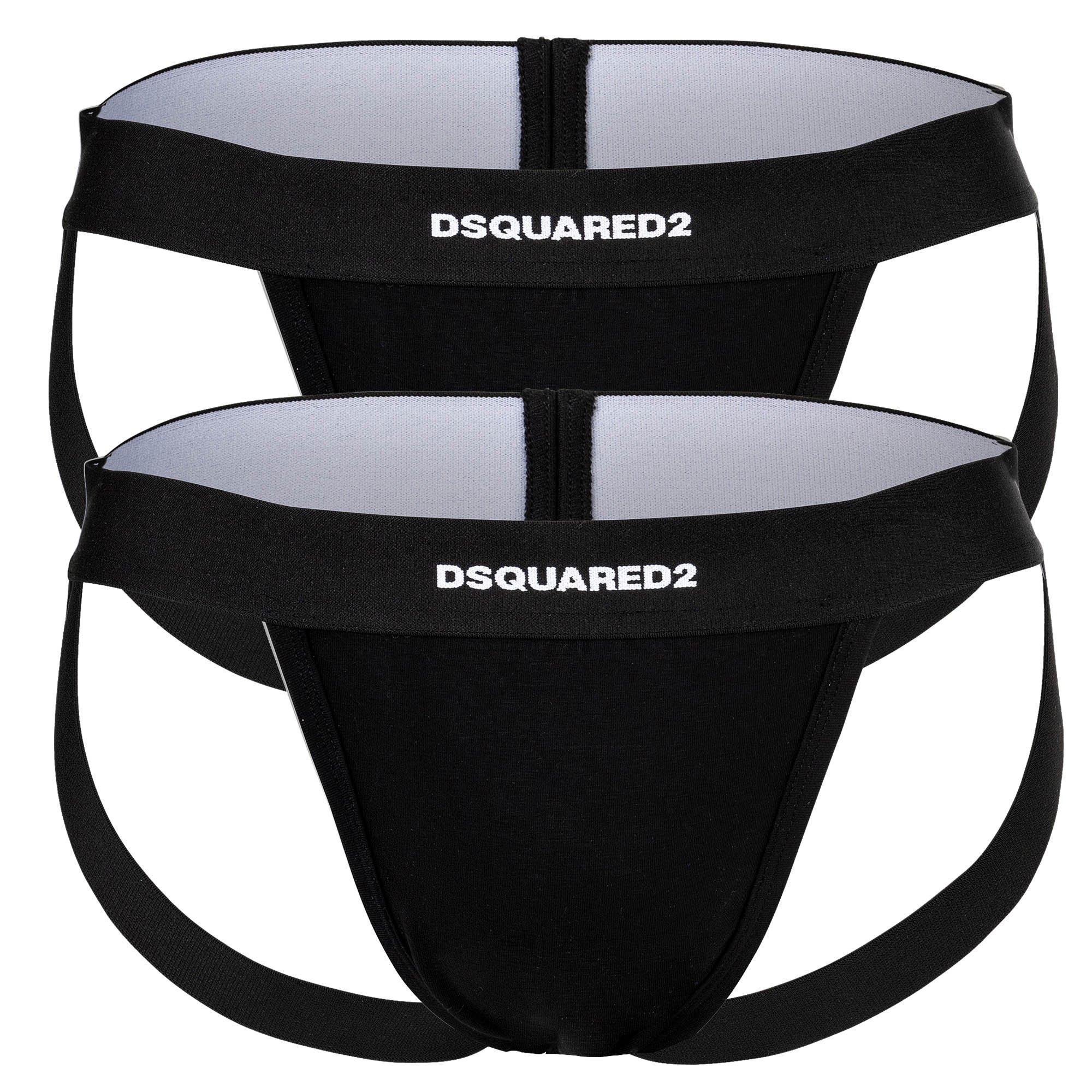 Dieses Doppelpack bietet zwei bequeme Jockstraps, die für einen sicheren und unterstützenden Sitz konzipiert sind. Das klassische Design verfügt über einen breiten elastischen Bund mit dem Dsquared2-Logo, der sowohl Stil als auch Komfort gewährleistet.