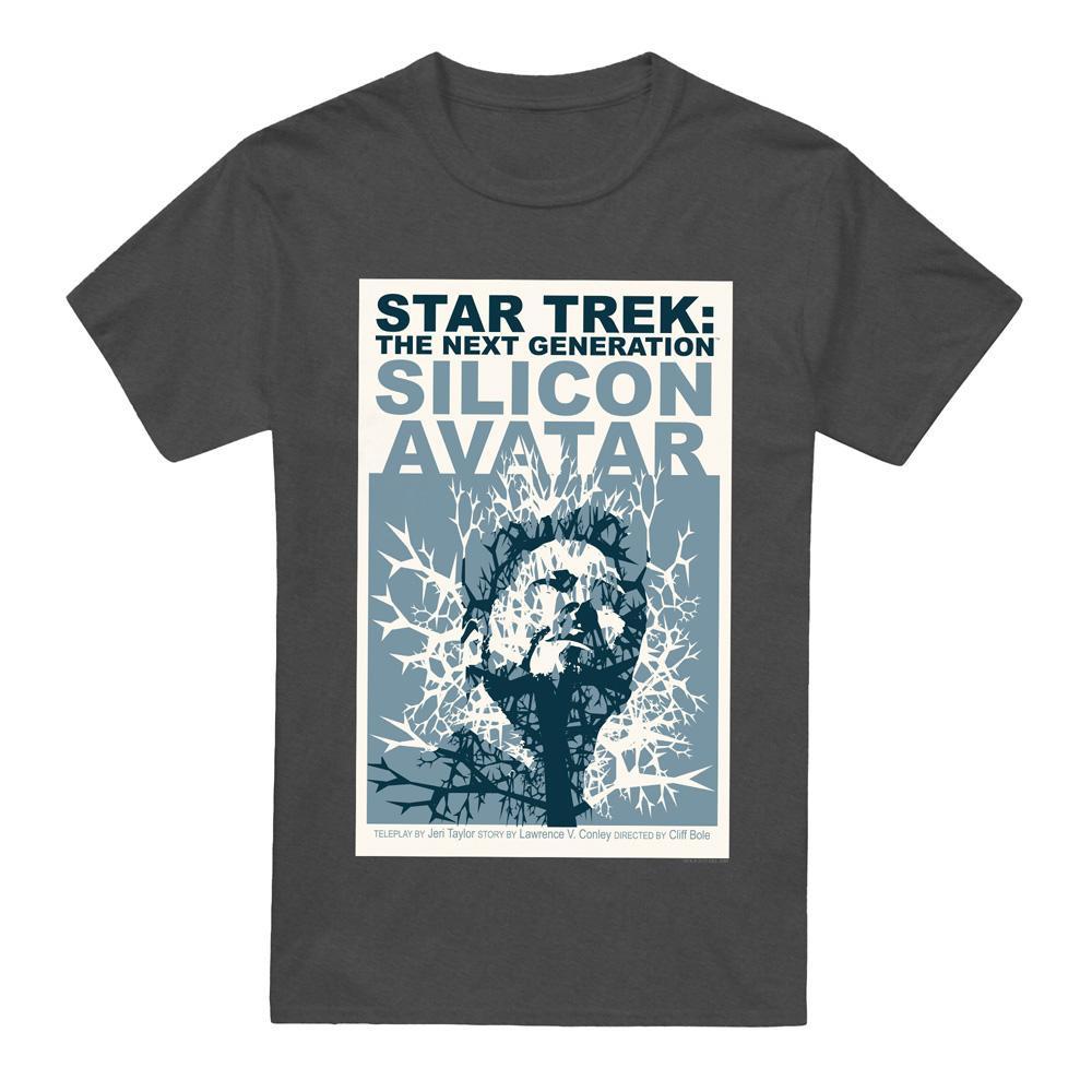 Dieses T-Shirt zeigt einen Grafikdruck, inspiriert von "Star Trek: The Next Generation" Staffel 5, Episode 4, mit dem Titel "Silicon Avatar". Das Design fängt die Essenz der Episode mit einer einzigartigen visuellen Darstellung ein.