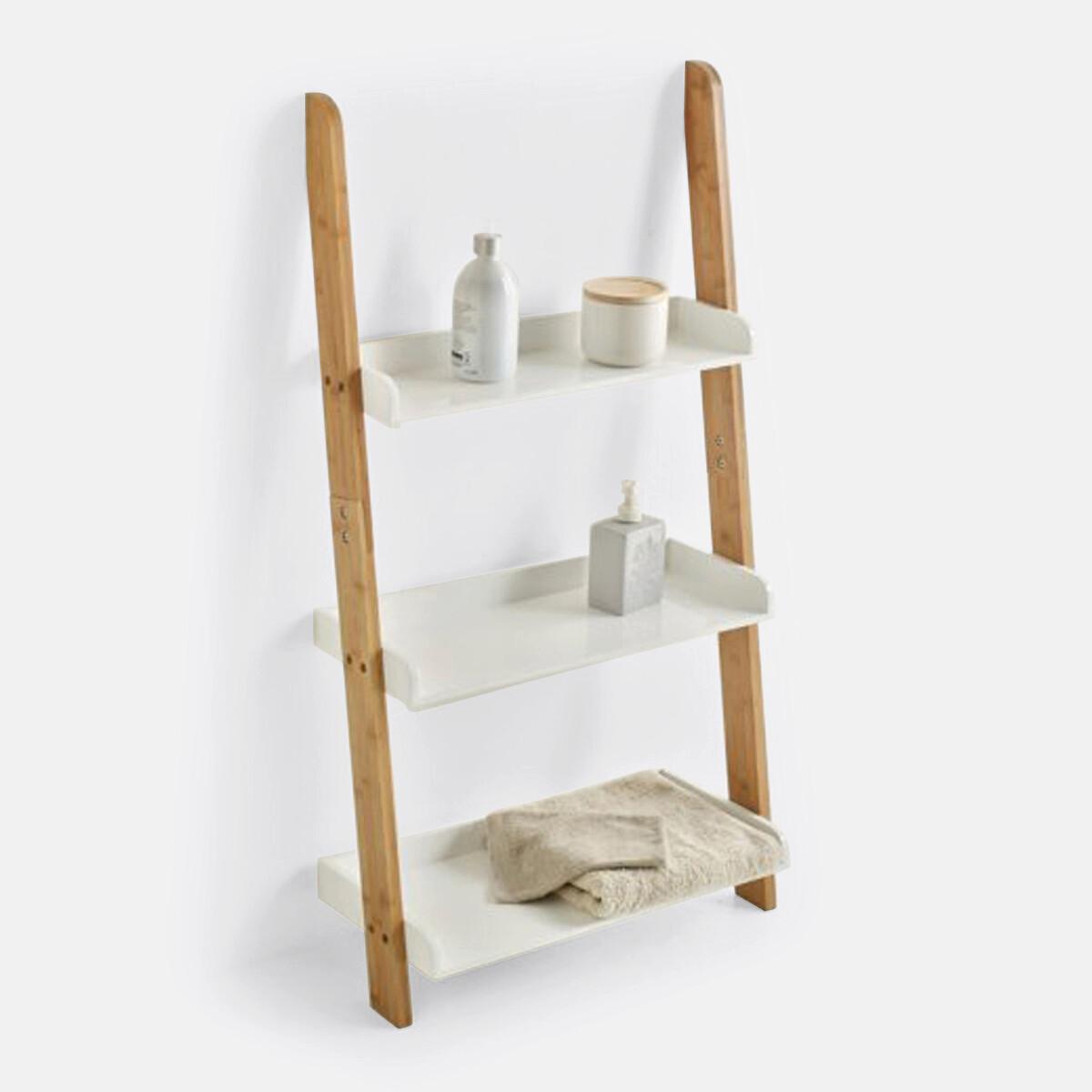 Das Leiterregal LINDUS mit Bambusstützen und 3 Böden ist besonders platzsparend : Es lässt sich überall im Badezimmer aufstellen und bietet Platz für diverse Accessoires.