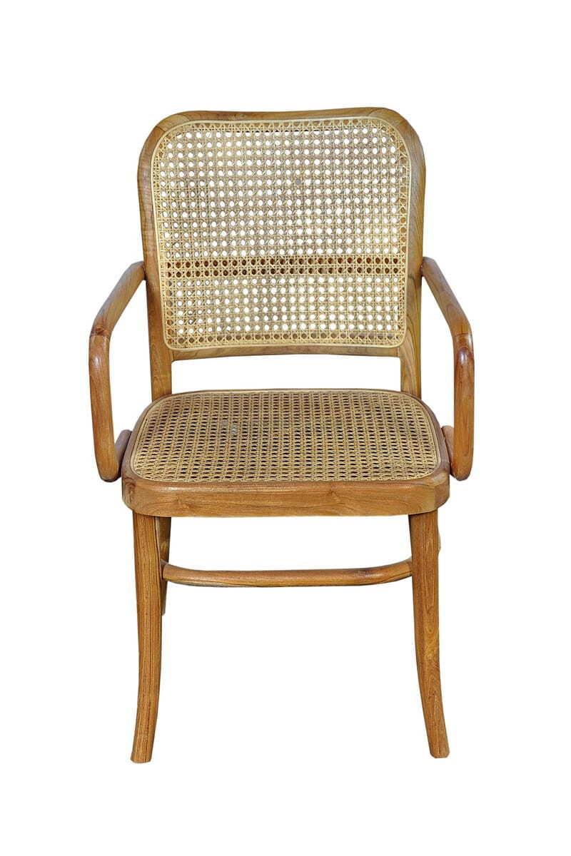 Armlehnstuhl mit Rattan-Geflecht, Farbe: natur, Material: Teak, Rattan, 84x60x59 cm