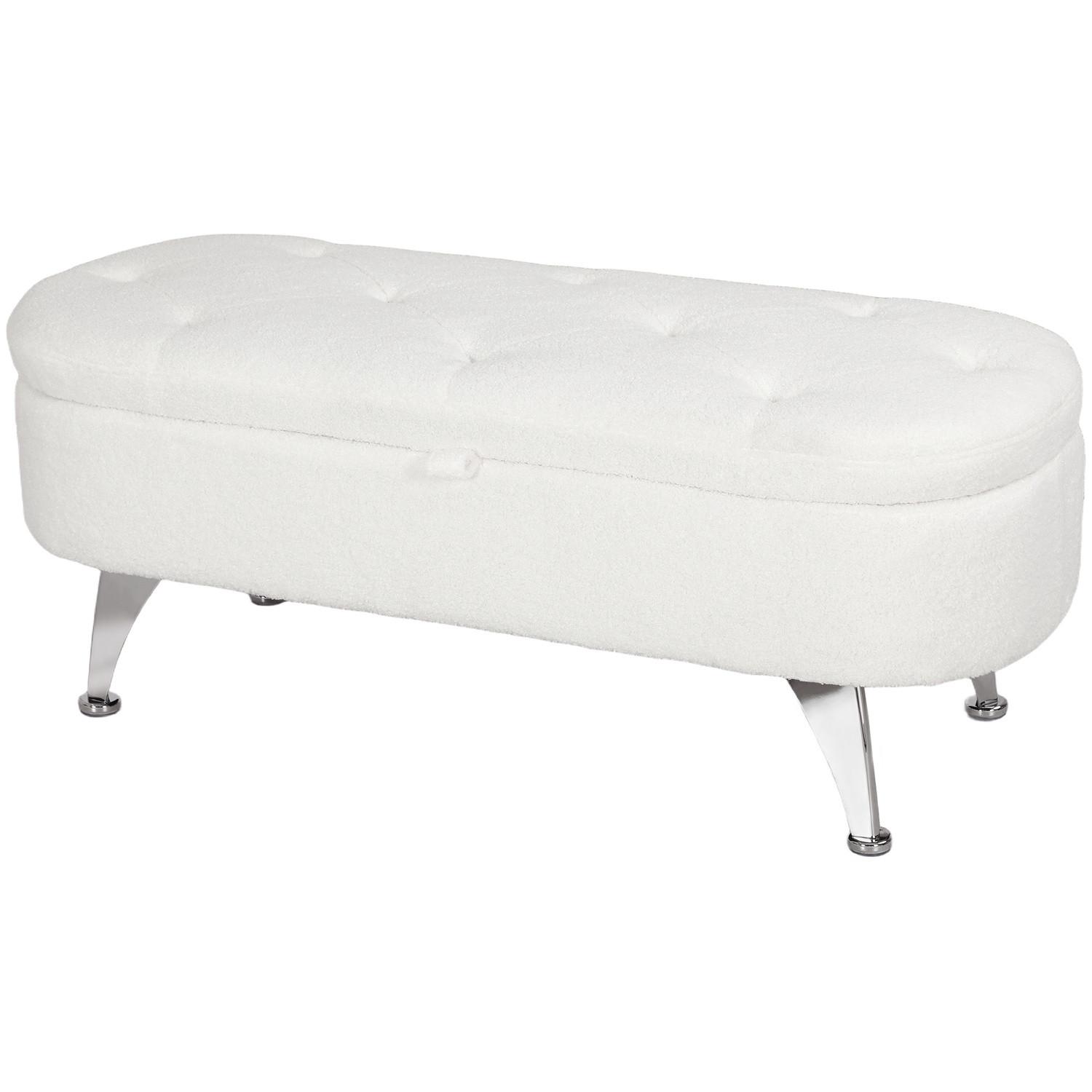 Northio, Sitzbank mit Stauraum, Polsterbank mit Deckel, Bettbank mit Teddysamtoptik, für Flur Schlafzimmer Wohnzimmer, Metallrahmen 114 x 47 x 46,5 cm Weiß