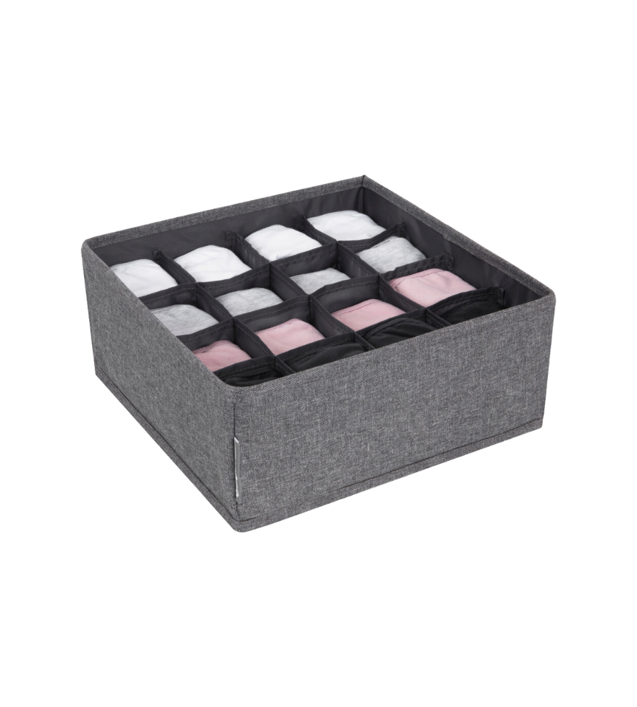 Der SOFT Organizer in Grau mit 16 Fächern bietet eine Vielzahl von Aufbewahrungsmöglichkeiten für Regal oder Schublade. Der Organizer bringt Ordnung in das Wäschechaos und eignet sich ideal zur Organisation von Socken und Unterwäsche. Auch weitere Accessoires und kleine Gegenstände finden im Organizer Platz. Bei Nichtgebrauch kann der Organizer schnell zusammengefaltet und platzsparend verstaut werden.