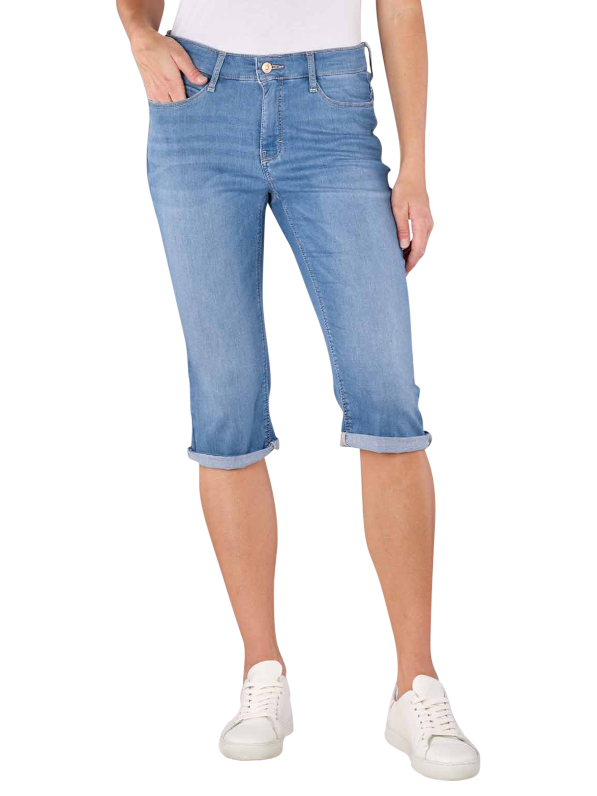 Diese Capri Jeans bieten eine bequeme und stilvolle Option für wärmere Tage. Der helle Denim-Waschton sorgt für einen vielseitigen Look, der gut zu verschiedenen Oberteilen und Schuhen passt. Diese Jeans sind für einfaches Tragen konzipiert und verfügen über einen klassischen Fünf-Taschen-Stil sowie einen Knopf- und Reissverschluss.