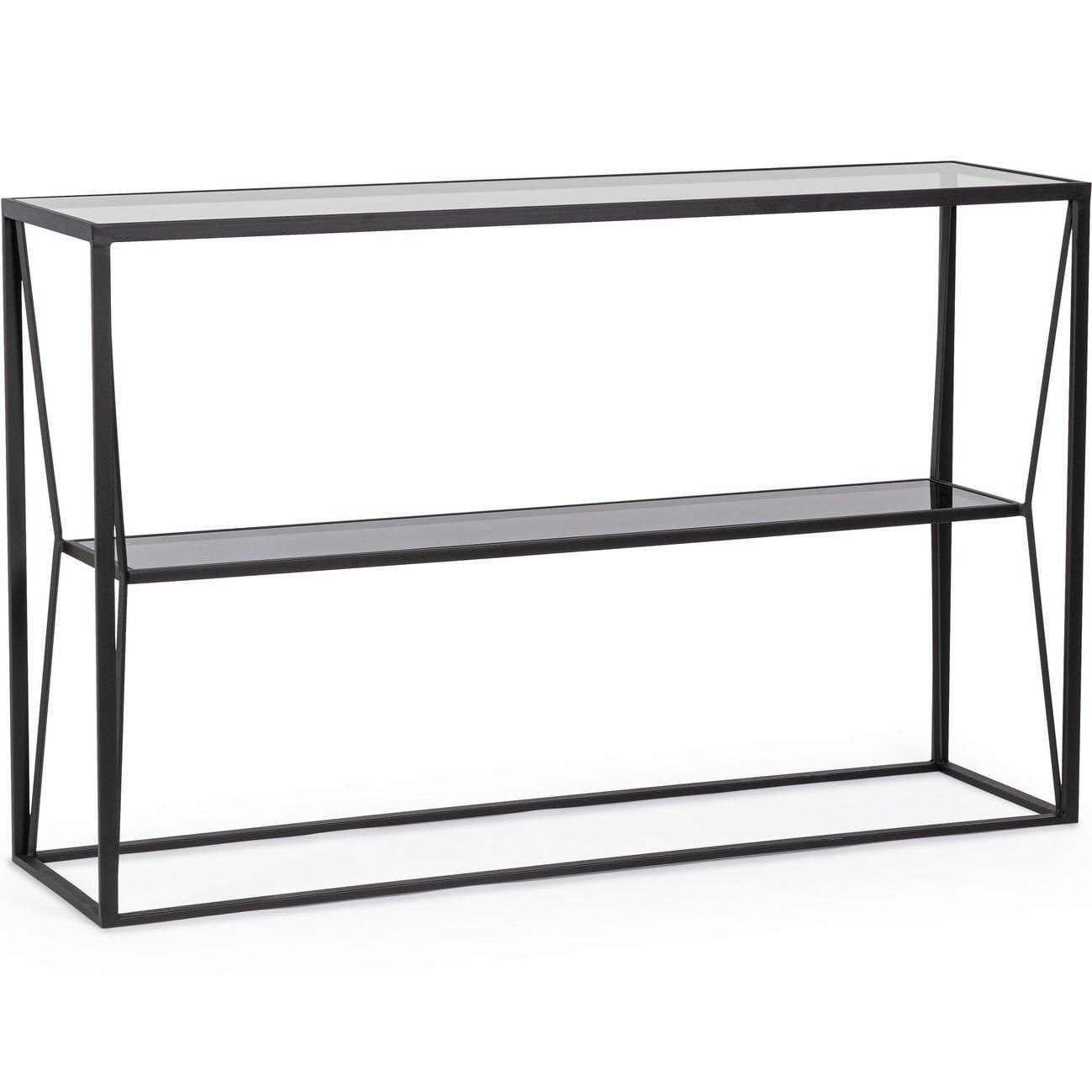 Konsole aus Stahl und Glas, Farbe Schwarz, 120 x 32 x 75h, Gestell aus Stahl mit epossidischer Pulverbeschichtung, Oberes Tablar aus gehärtetem Glas