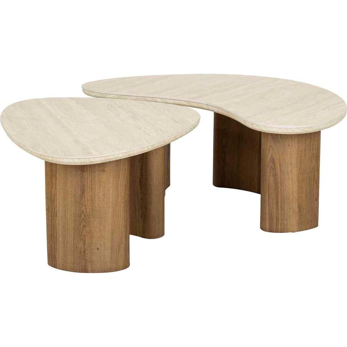 Dieser elegante Couchtisch im 2er-Set vereint modernes Design mit klassischem Charme. Die organische Formgebung und die luxuriöse Keramikplatte in Travertinoptik machen den Couchtisch Romano zu einem Highlight in jedem Wohnraum. Der stabile Holzrahmen sorgt nicht nur für Standfestigkeit, sondern unterstreicht auch die hochwertige Verarbeitung. Ideal für Wohnzimmer, die sowohl Stil als auch Funktionalität schätzen. Der Couchtisch Romano ceramic travertine passt perfekt in moderne und klassische Interieurs und bietet vielseitige Einsatzmöglichkeiten. Ob als stilvolles Zentrum im Wohnzimmer oder als praktische Ablagefläche neben dem Sofa dieser Tisch überzeugt in jeder Hinsicht. Die Kombination aus Keramik und Holz verleiht dem Raum eine warme und zugleich elegante Atmosphäre.