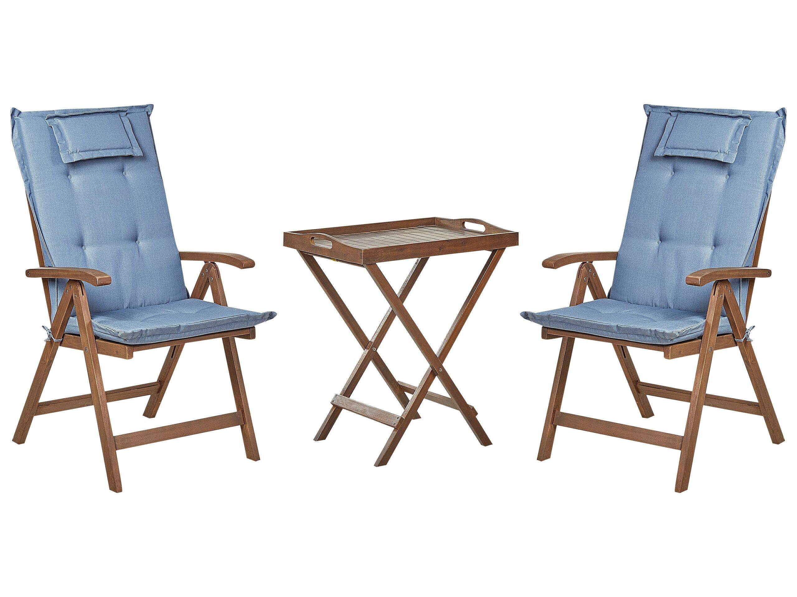 Klappbare Balkonmöbel aus hochwertigem Akazienholz mit passenden Auflagen. Diese rustikalen Gartenmöbel werden Ihren Aussenbereich in einen gemütlichen Treffpunkt verwandeln. Sowohl die Stühle als auch der Couchtisch sind aus strapazierfähigem Akazienholz gefertigt und benötigen nur minimale Pflege, um über viele Jahre hinweg in gutem Zustand zu bleiben. Alle Teile lassen sich zusammenklappen, sodass sie bei Bedarf leicht verstaut oder umgestellt werden können. Ausserdem sind die Holzstühle mit verstellbaren Rückenlehnen ausgestattet, die nach einem anstrengenden Tag zum Entspannen und Relaxen einladen. Die abnehmbare Tischplatte des Klapptisches kann als vielseitiges Tablett für den täglichen Gebrauch dienen. Die zusätzlichen Auflagen bestehen aus einem strapazierfähigem Stoff, der sowohl feuchtigkeitsabweisend, als auch UV-resistent und sehr hochwertig verarbeitet ist. Dank den praktischen Bindebändern bleiben die Polsterauflagen immer an Ort und Stelle.