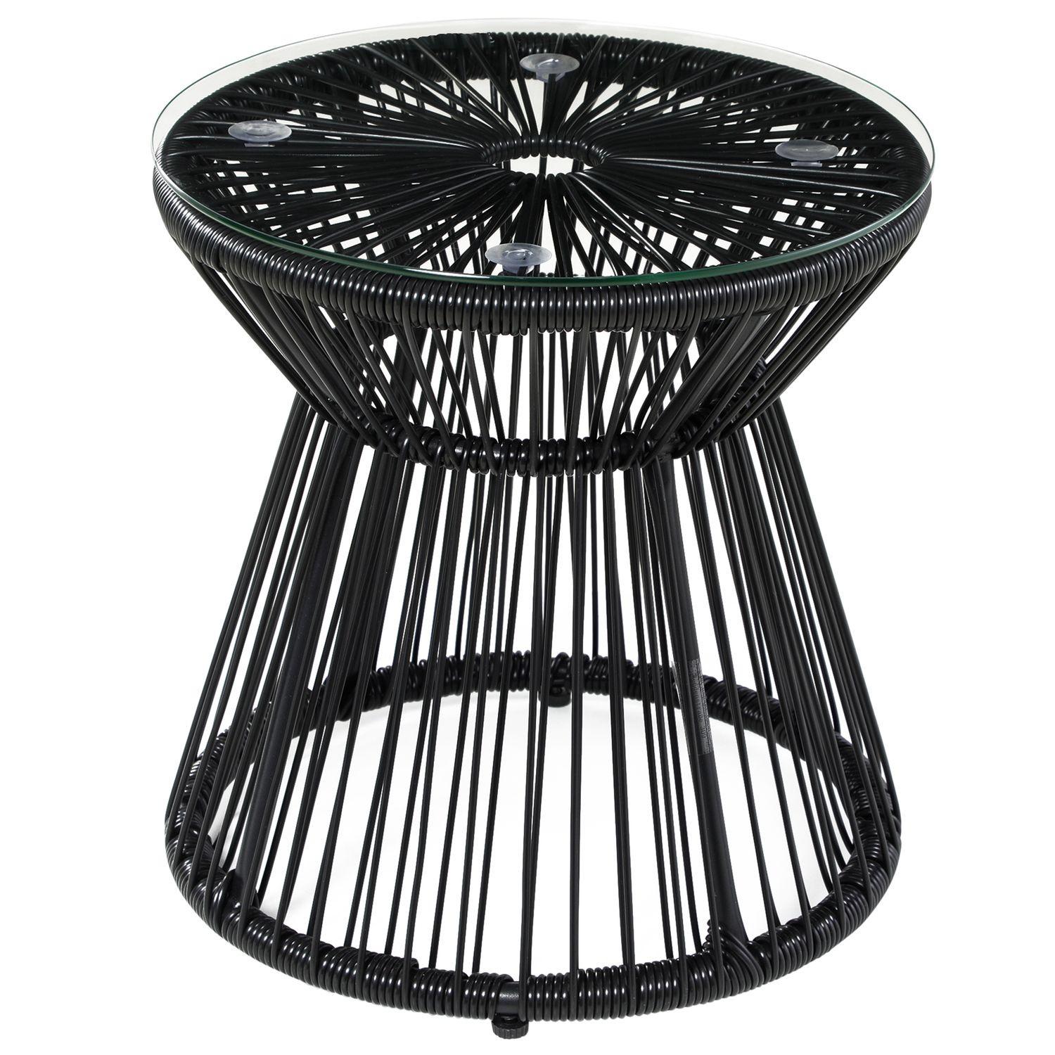 Northio, Gartentisch Mit Hohltrommel-Design, Bistrotisch Mit Glastischplatte, Runder Kaffeetisch, Bistrotisch Mit Glastischplatte, Schwarz