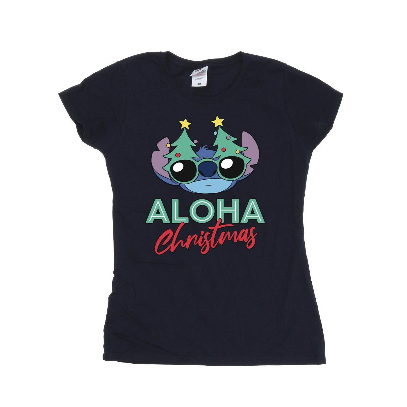 Dieses T-Shirt zeigt ein festliches "Aloha Christmas"-Design mit Stitch, der eine Weihnachtsbaumbrille trägt. Es ist ein lustiges und lässiges Oberteil für die Weihnachtszeit.