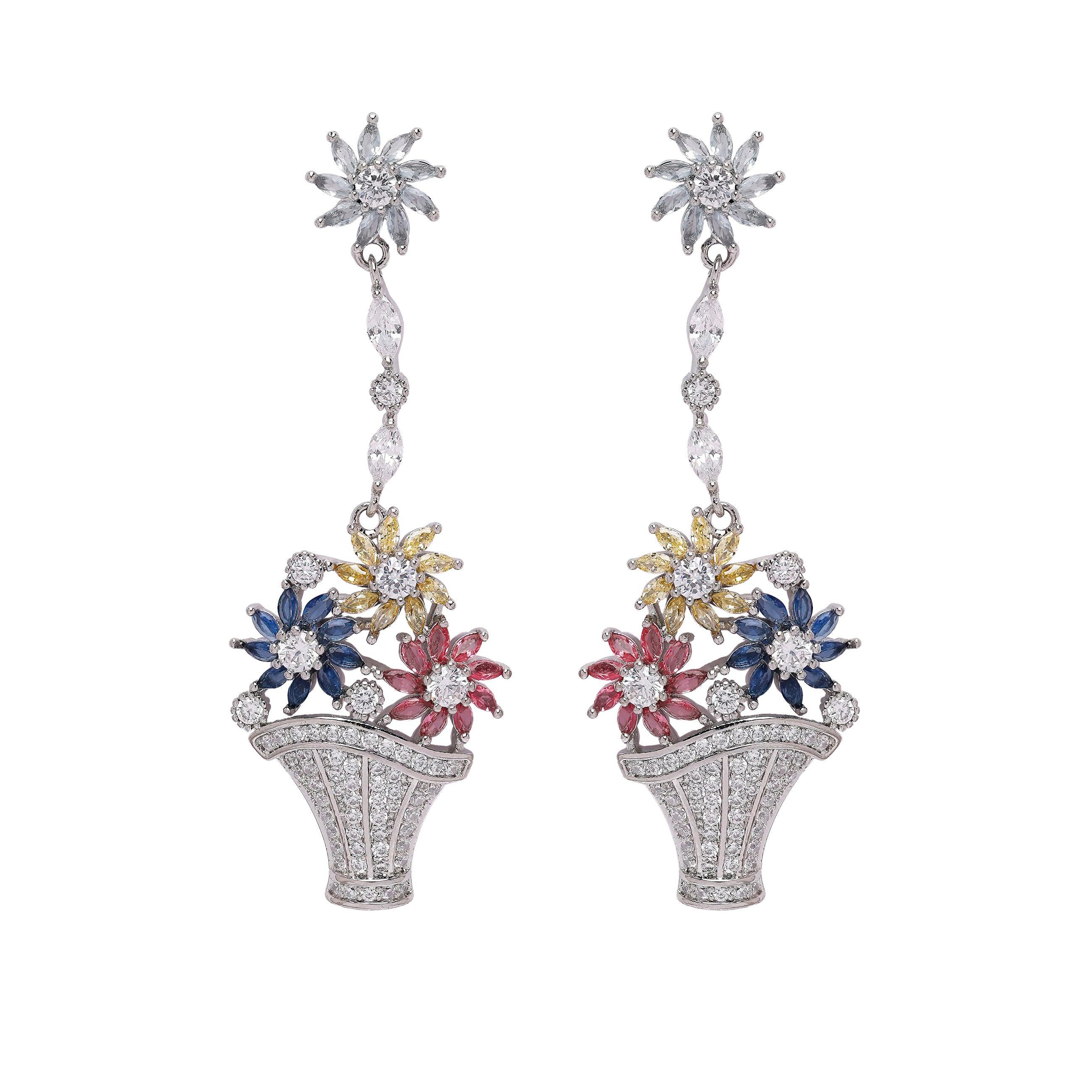 Die Diva Cute Bouquet Drop Earrings sind ein bezauberndes und verspieltes Accessoire aus hochwertigem Zirkonia. Diese Ohrringe stammen aus der Diva-Kollektion. Der Blumenstrauß aus roten, blauen und gelben Zirkoniablüten sorgt für einen farbenfrohen und fröhlichen Look. Jede einzelne Blüte verleiht den Ohrringen eine verspielte Note und fängt das Licht wunderschön ein. Sie sind ideal, um Ihrem Outfit einen Hauch von Verspieltheit zu verleihen und eine bezaubernde Ergänzung Ihrer Schmucksammlung zu sein. Größe: 2,0 cm x 5,6 cm | Beschichtung: Rhodiumplattiert | Verschluss: Stecker und Rückseite