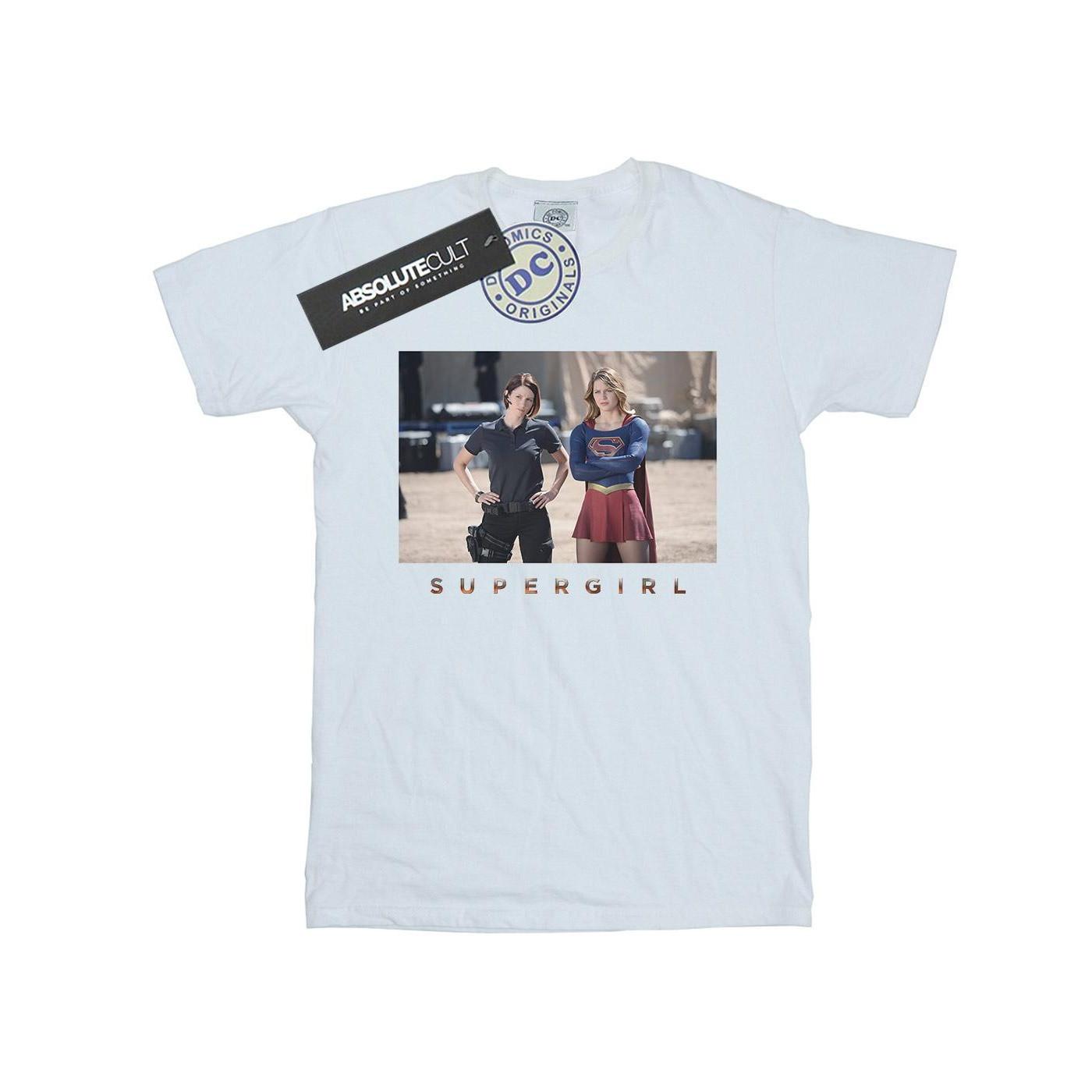 Dieses Supergirl T-Shirt zeigt einen Fotodruck von Supergirl und einer weiteren Figur und ist somit eine grossartige Ergänzung für Fans der Serie. Das Design ist auf einem klassischen weissen Kurzarm-T-Shirt gedruckt.