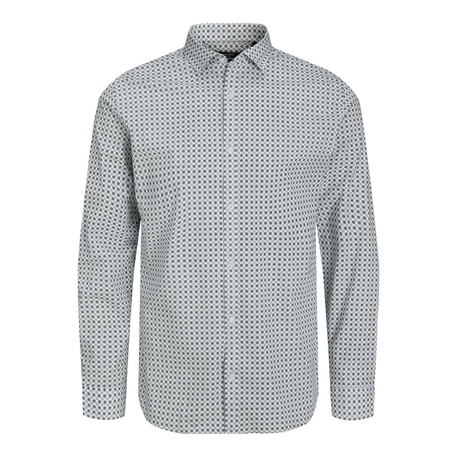 Dieses Langarmhemd verfügt über einen klassischen Umlegekragen und eine durchgehende Knopfleiste, die eine zeitlose und vielseitige Ergänzung für jede Garderobe darstellt. Das durchgehende geometrische Muster verleiht einen Hauch moderner Raffinesse.